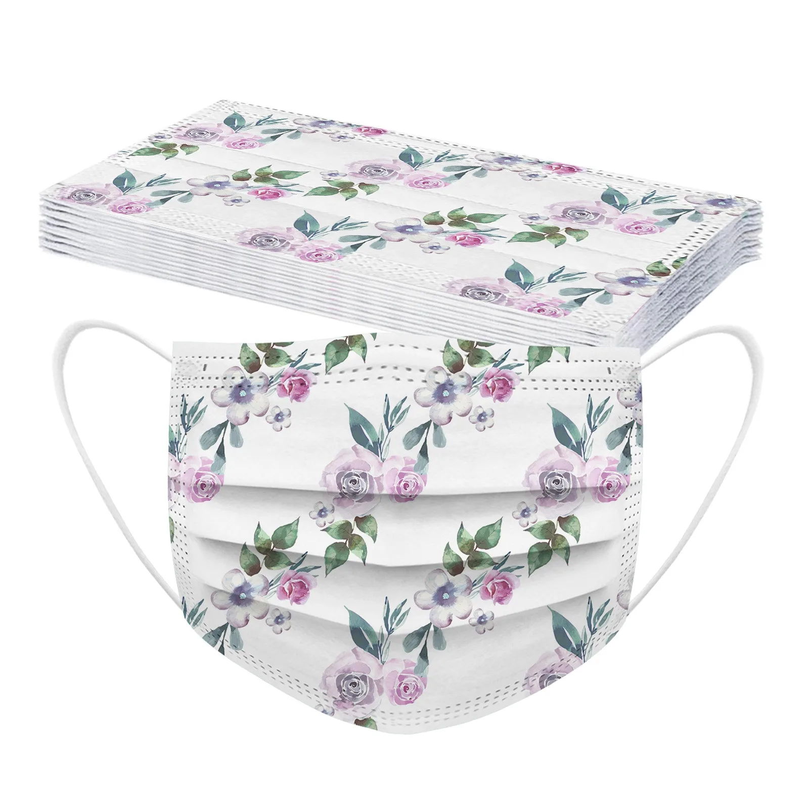 Одноразовые маски для лица, трехслойные маски унисекс с цветочным принтом для взрослых, 10 шт.