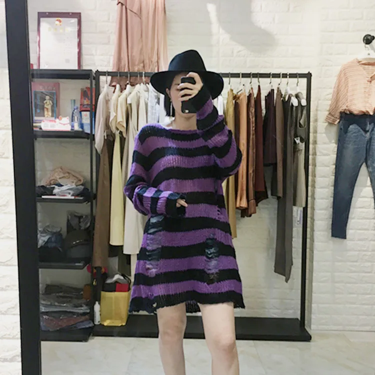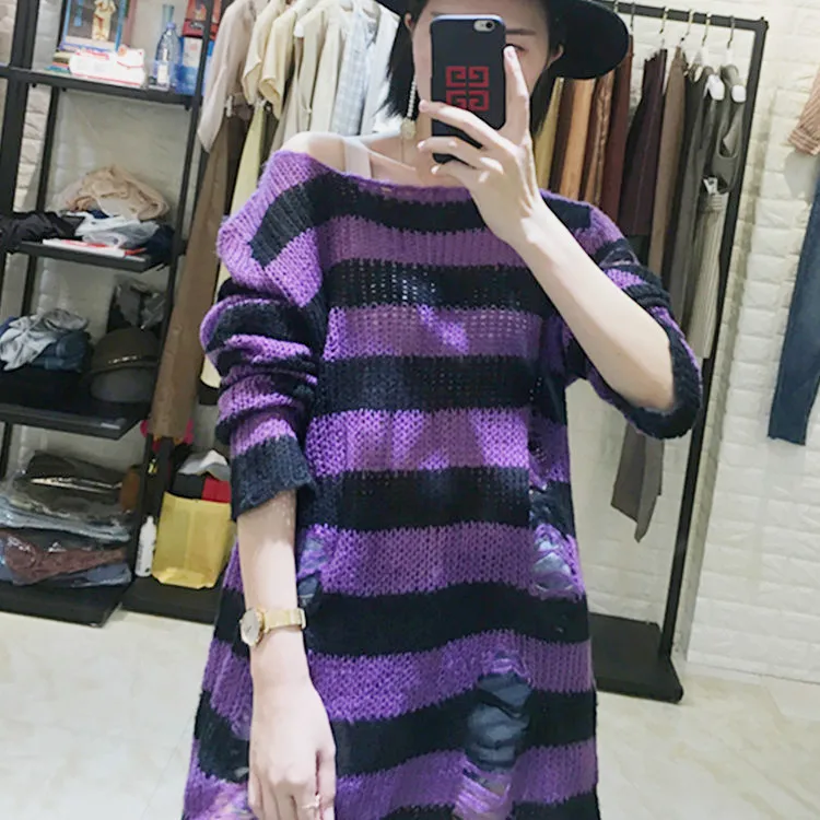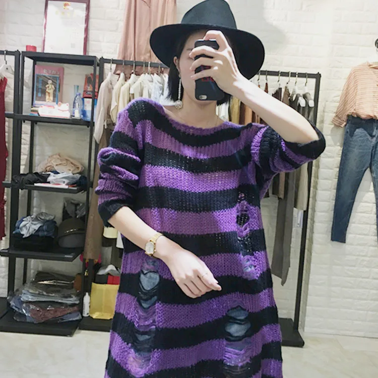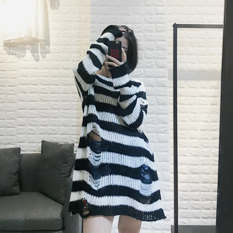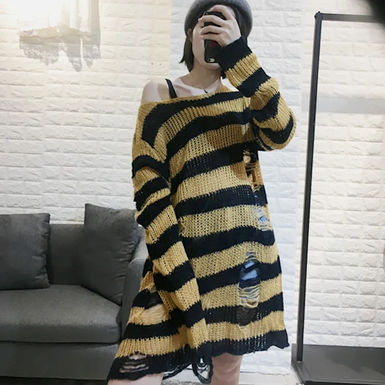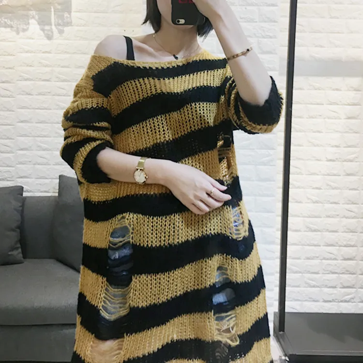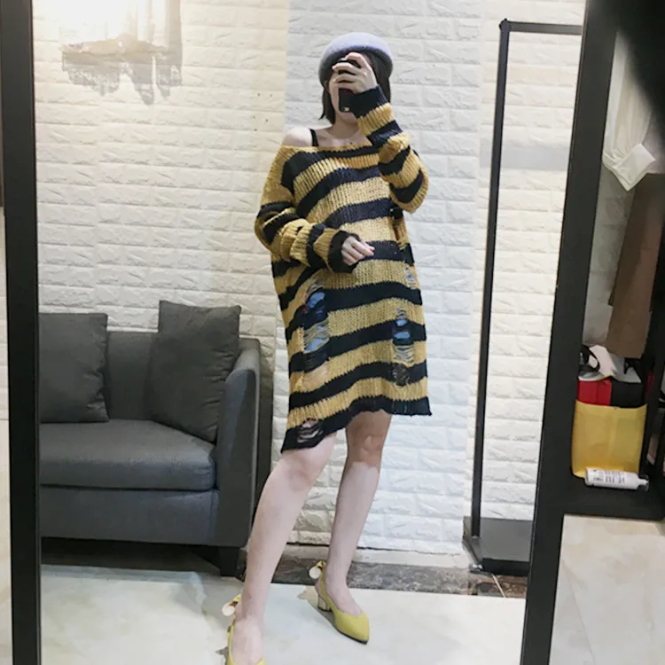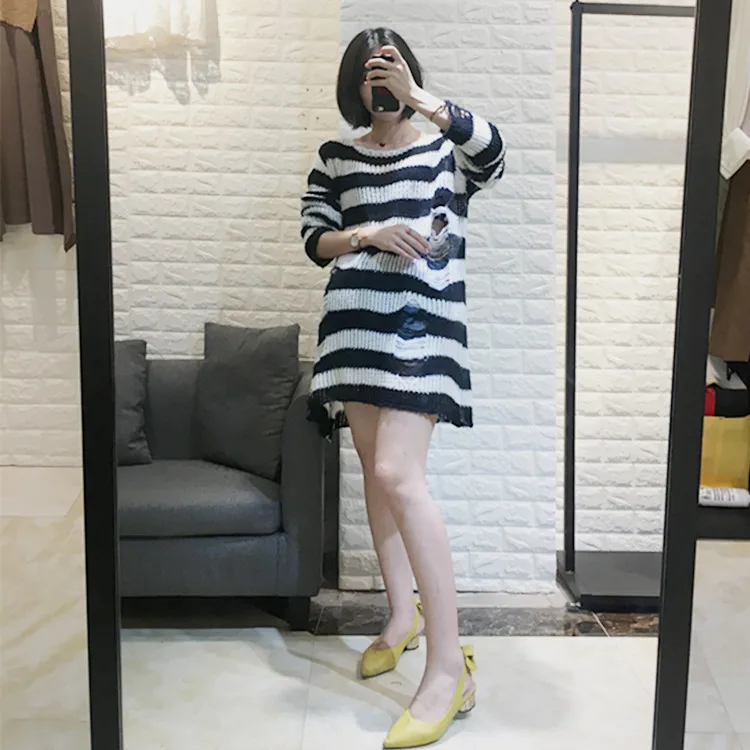 Женское трикотажное платье-свитер в полоску, Повседневный пуловер оверсайз с вырезами, весна-осень 2021