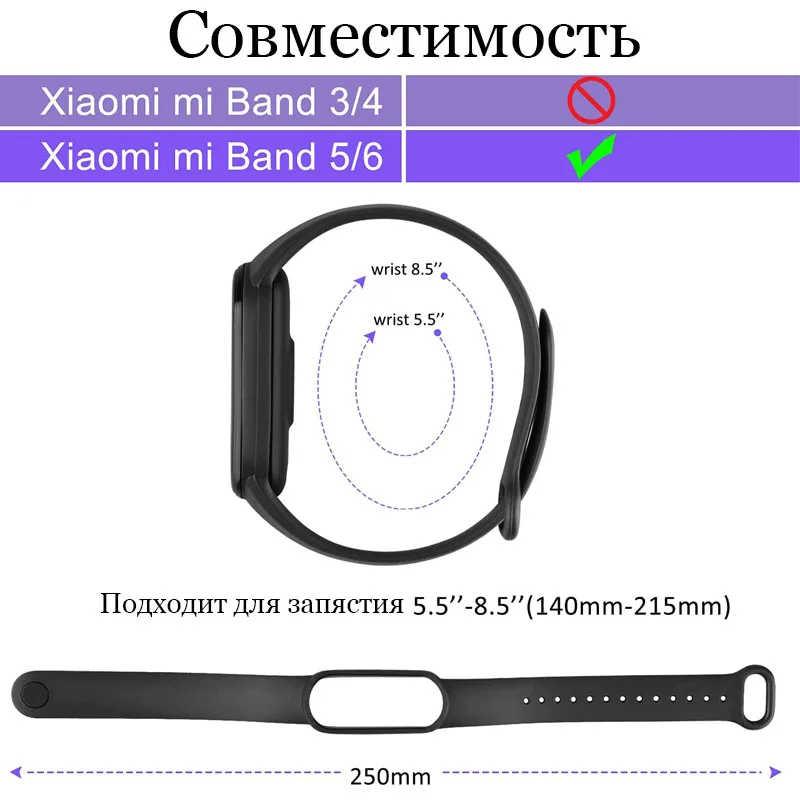 Силиконовый ремешок для для Xiaomi Mi Band 5 Band 6 браслет для фитнес браслета mi 5 mi 6