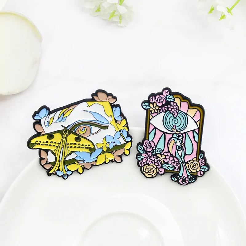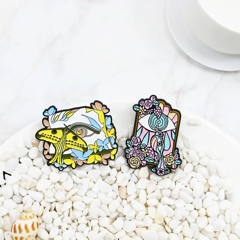 Брошь на лацкан, с эмалью, глаз желания, волшебный глаз головокружения, зеркало, птичий глаз, Бабочка, металлическая брошь на заказ, Ювелирное Украшение для одежды