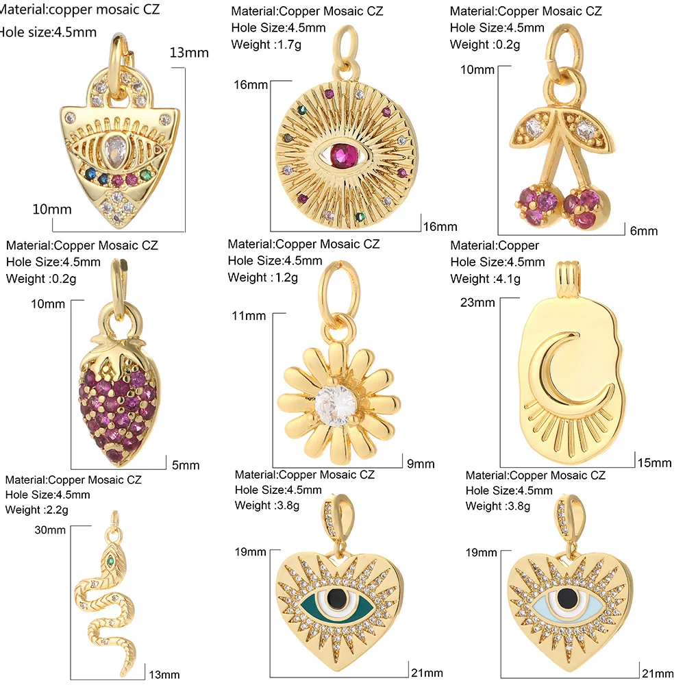 Кулон Луна, змея, сглаза, голубой глаз, подвеска, ожерелье, Золотые Подвески для изготовления ювелирных изделий для женщин, сделай сам, с фруктами, медь, инкрустированный цирконием 2021