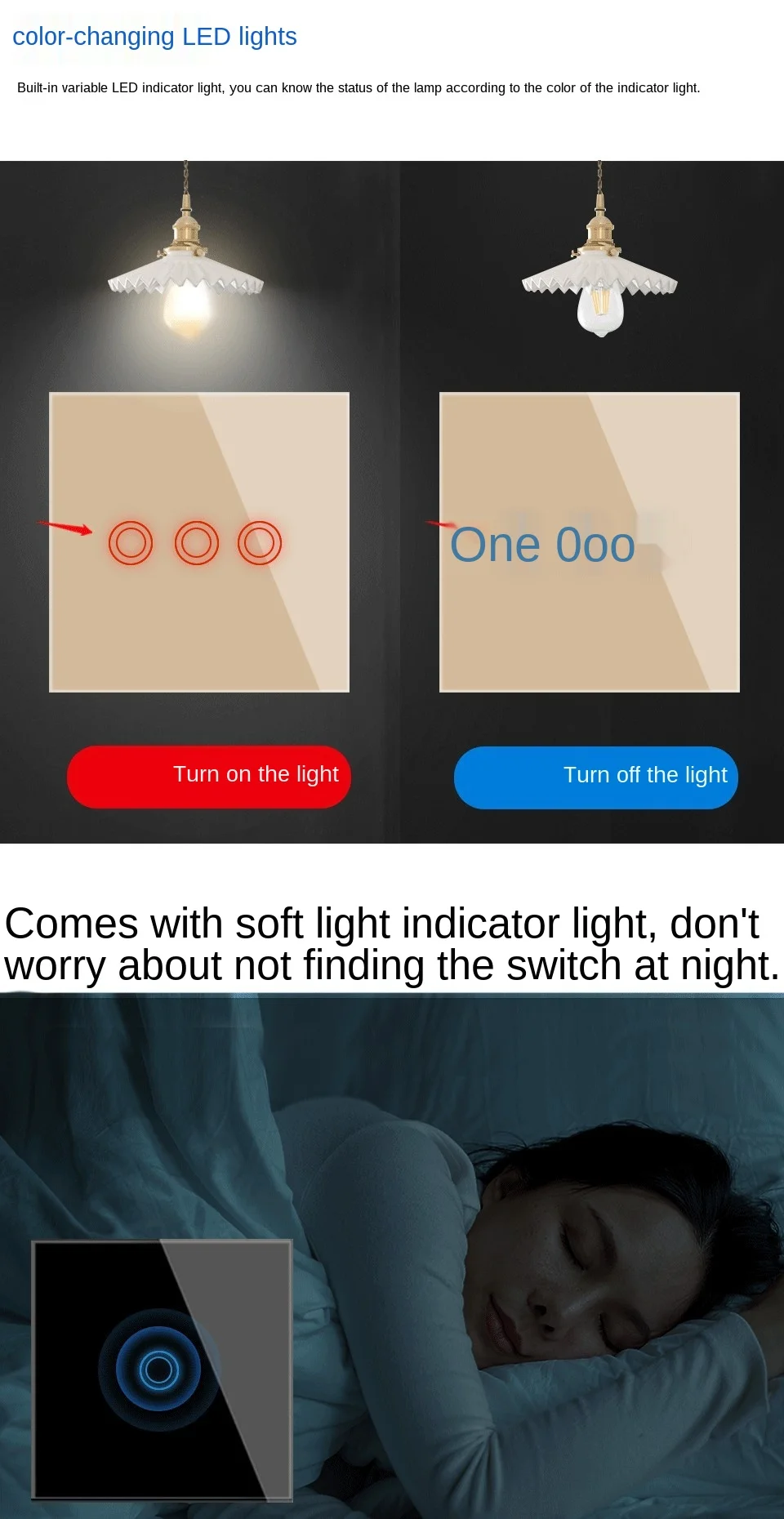 Входное напряжение AC110-240V Одиночная мощность 5-300 Вт (лампа накаливания) 5-150 Вт (светодиодный светильник) Пожалуйста, не превышайте нагрузку для использования,