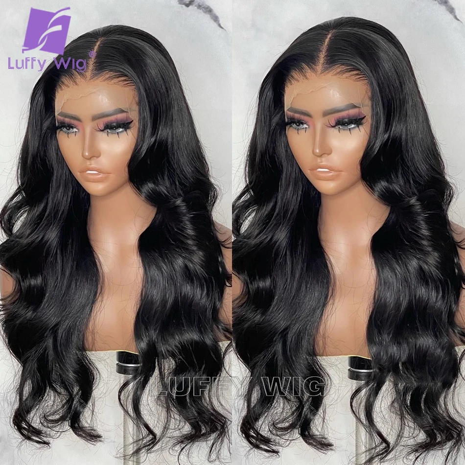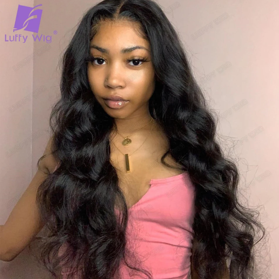 Парик Luffywig женский из натуральных волос, свободный волнистый Прозрачный передний, с предварительно выщипанными волосами, 13x 6