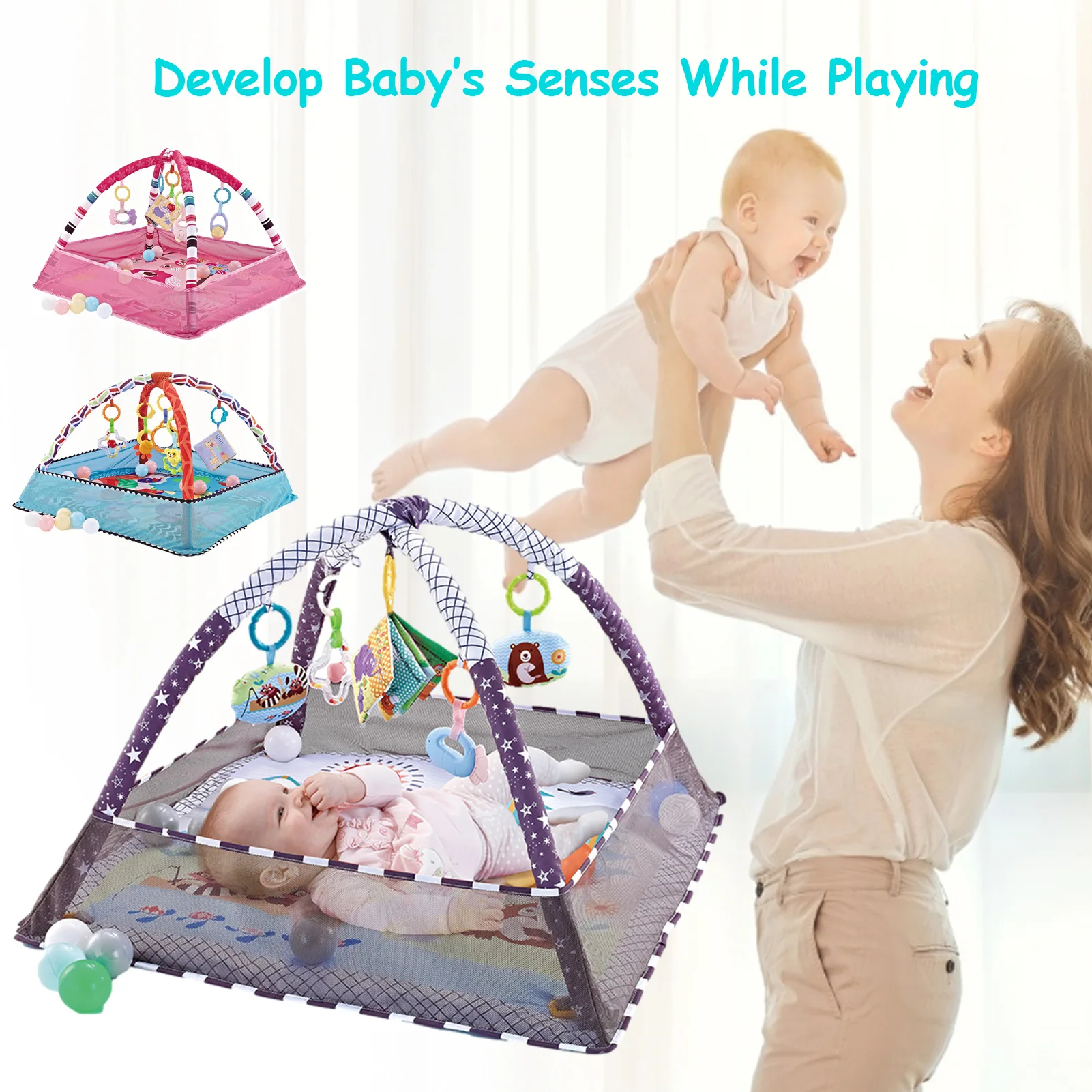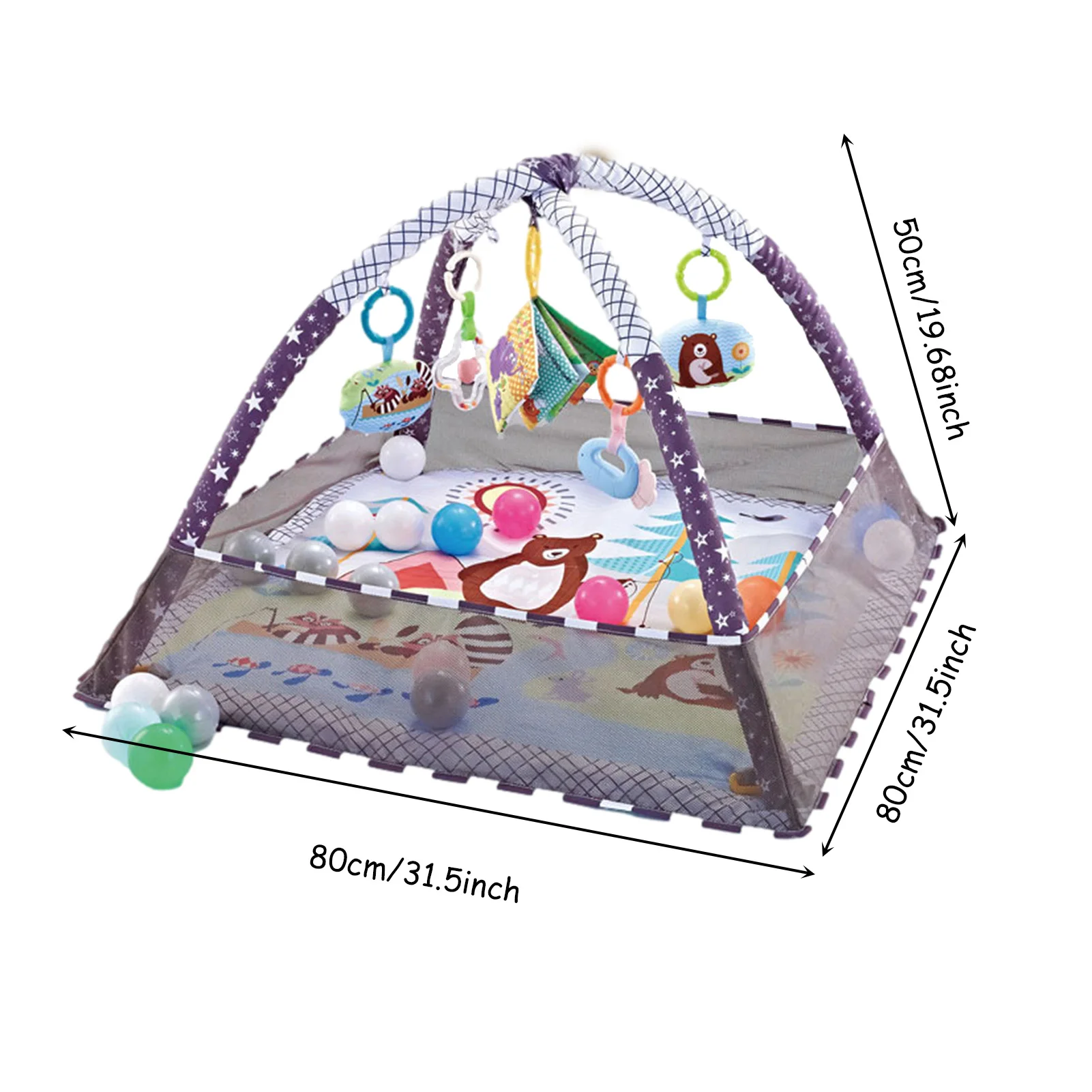 1. Защита: наши детские игровые коврики разработаны с защитными сетками вокруг них, чтобы предотвратить случайное выскакивание младенцев из ковриков и получение травм во время игры, давая им дополнительный слой защиты.2. Фитнес-рамка может тренировать ребенка хватать, сжимать, ногами и шагами, а также развивать распознавание цвета и сенсорное развитие ребенка.Спецификация:Материал: АБС + тканьРазмер: около 80*80*50 см/31,5*31,5*19,68 дюймовВес: около 950 гУпаковочный лист:Детский спортивный зал * 1