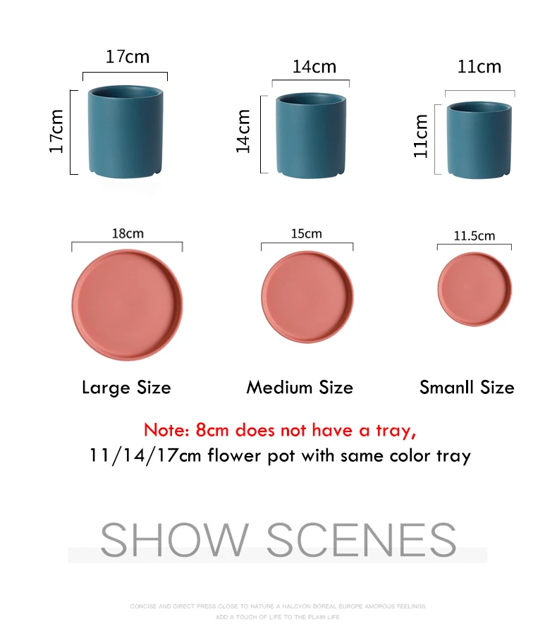 Цветные керамические цветочные горшки в скандинавском стиле, горшки для суккулентов, цилиндрические цветочные горшки с перфорированным подносом для зеленых растений