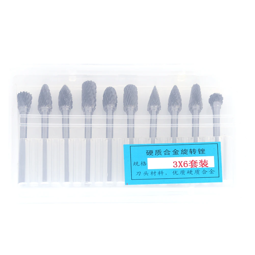 Один набор 10 шт. 6 мм * 3 мм вольфрамовые стальные карбидные заусенцы и коробка для хранения для маленьких роторных инструментов сверл