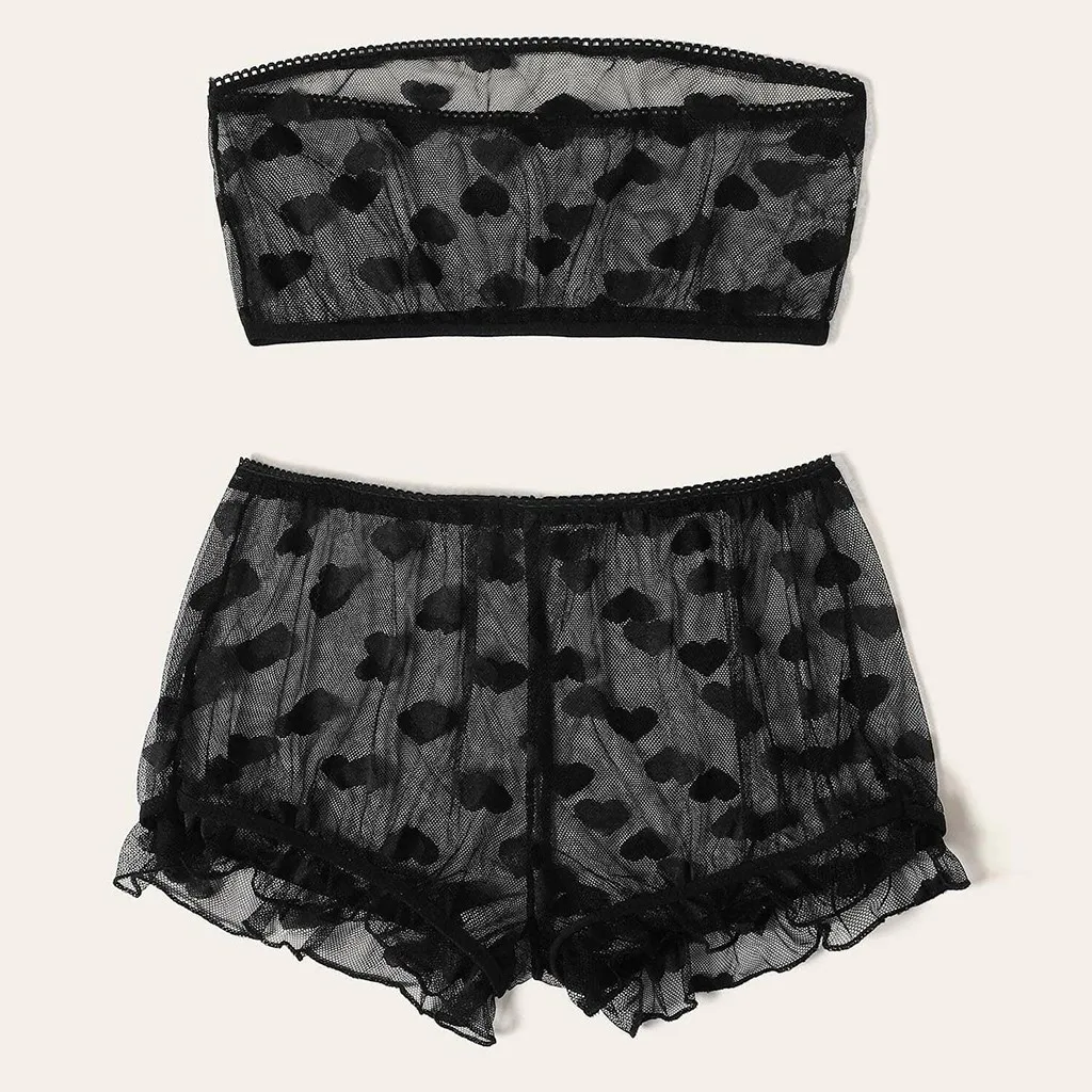 Кружевное сексуальное женское нижнее белье, комплект женского нижнего белья, топ с трубочкой, шорты, стринги с узором в виде сердца, комплект прозрачного нижнего белья, пижамы, ночные халаты