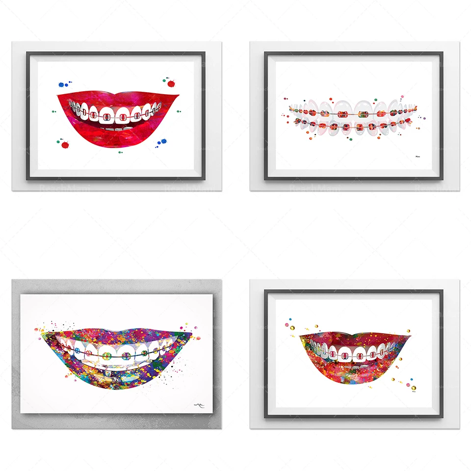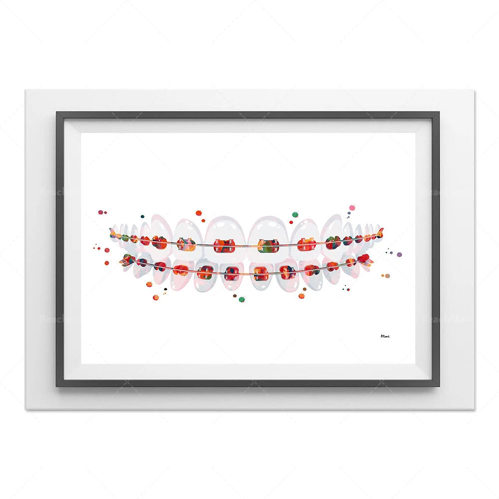 Стоматологическое искусство подтяжки с принтом, акварельные вмятины, анатомический художественный плакат, стоматология, клиника, настенное искусство, брекеты для зубов, принт, уход за зубами
