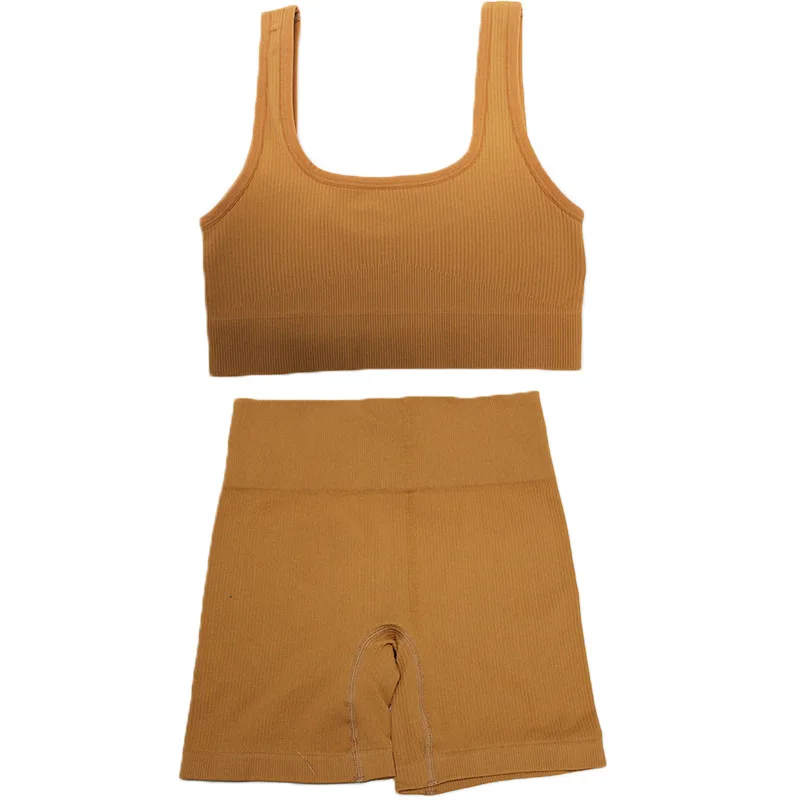 Комплект Спортивный бесшовный для йоги, с U-образным вырезом и шорт...