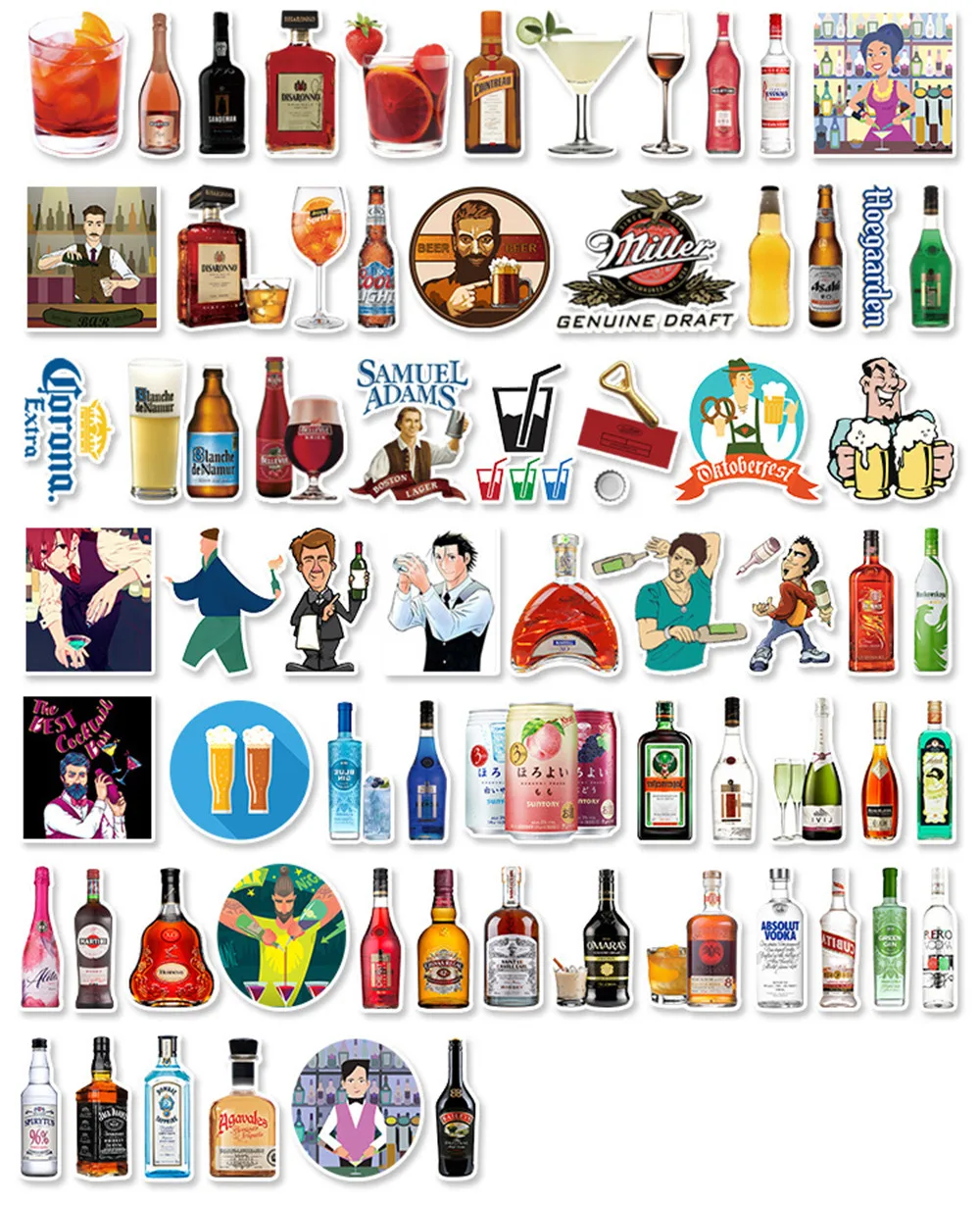 67pcs Alcohol Wine Beer Bottle Stickers for Laptop Car Helmet