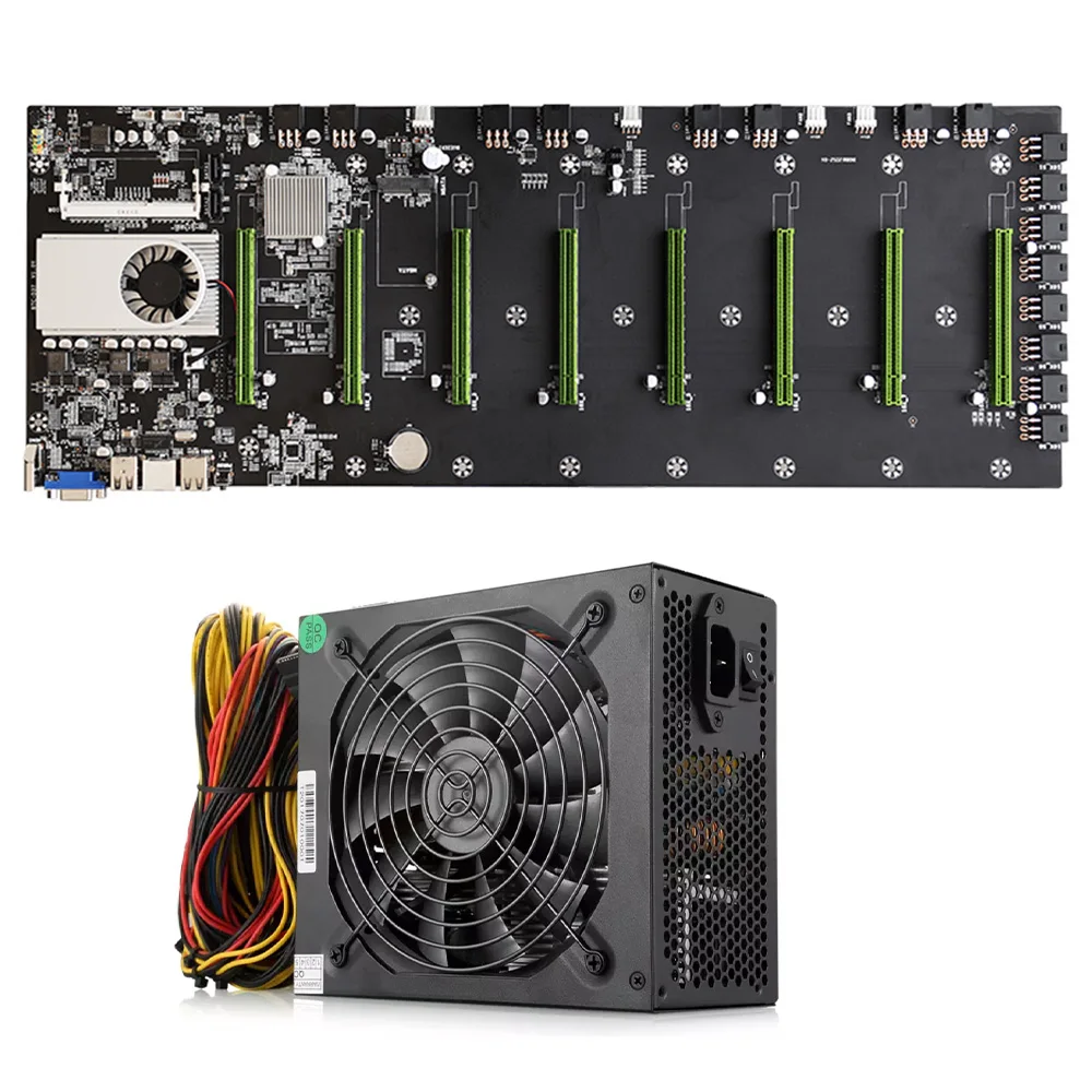 BTC-S37 Miner Mining Rig комплект материнской платы 8 pcie 16X видеокарта SODIMM DDR3 SATA3.0 VGA + HDMI-совместимый + 1850 Вт PSU для ETH