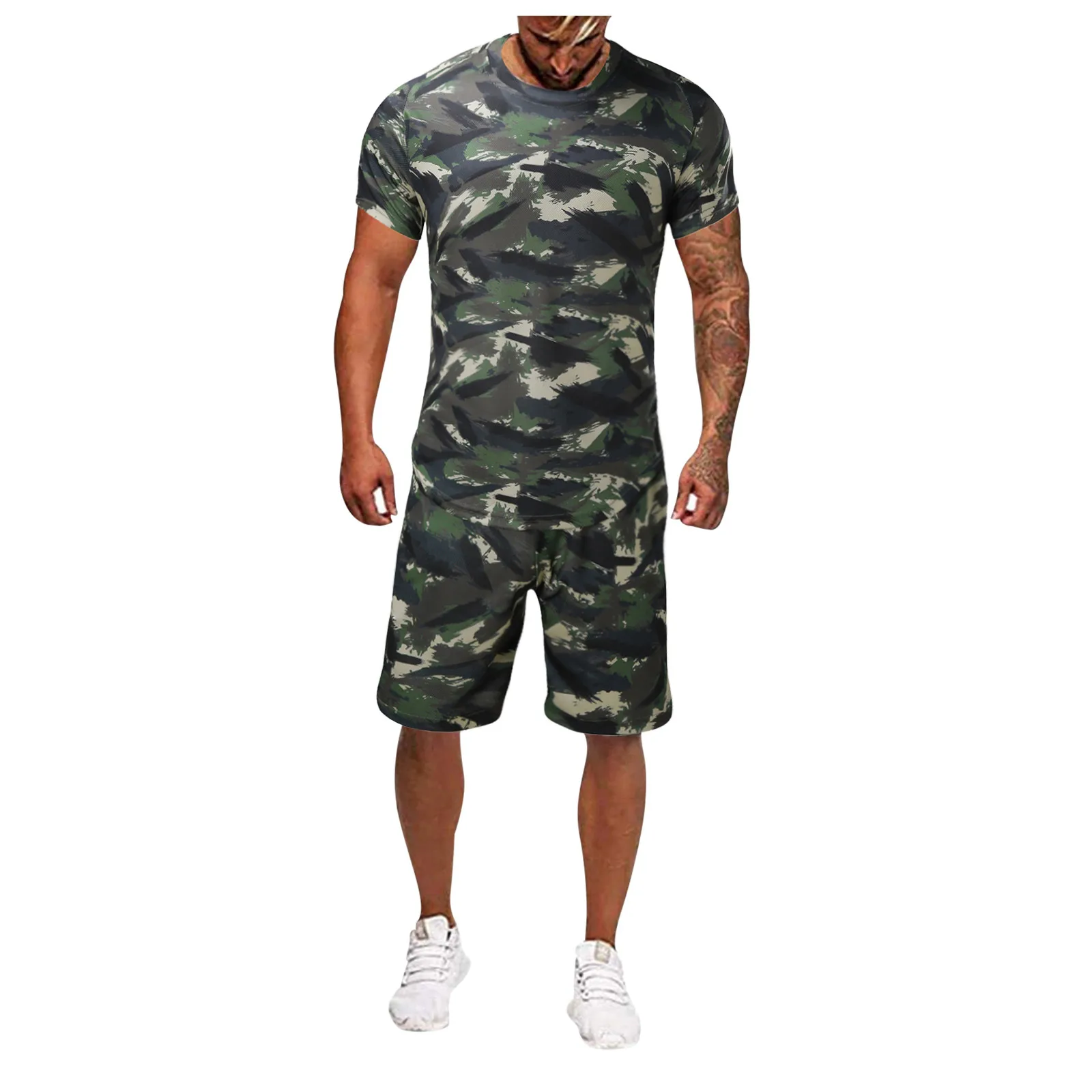 Камуфляж плотно Для Мужчин's комплекты Спортивный костюм короткий рукав Футбол спортивный костюм летние Футболки + шорты, спортивный комплект из 2 частей спортивный костюм