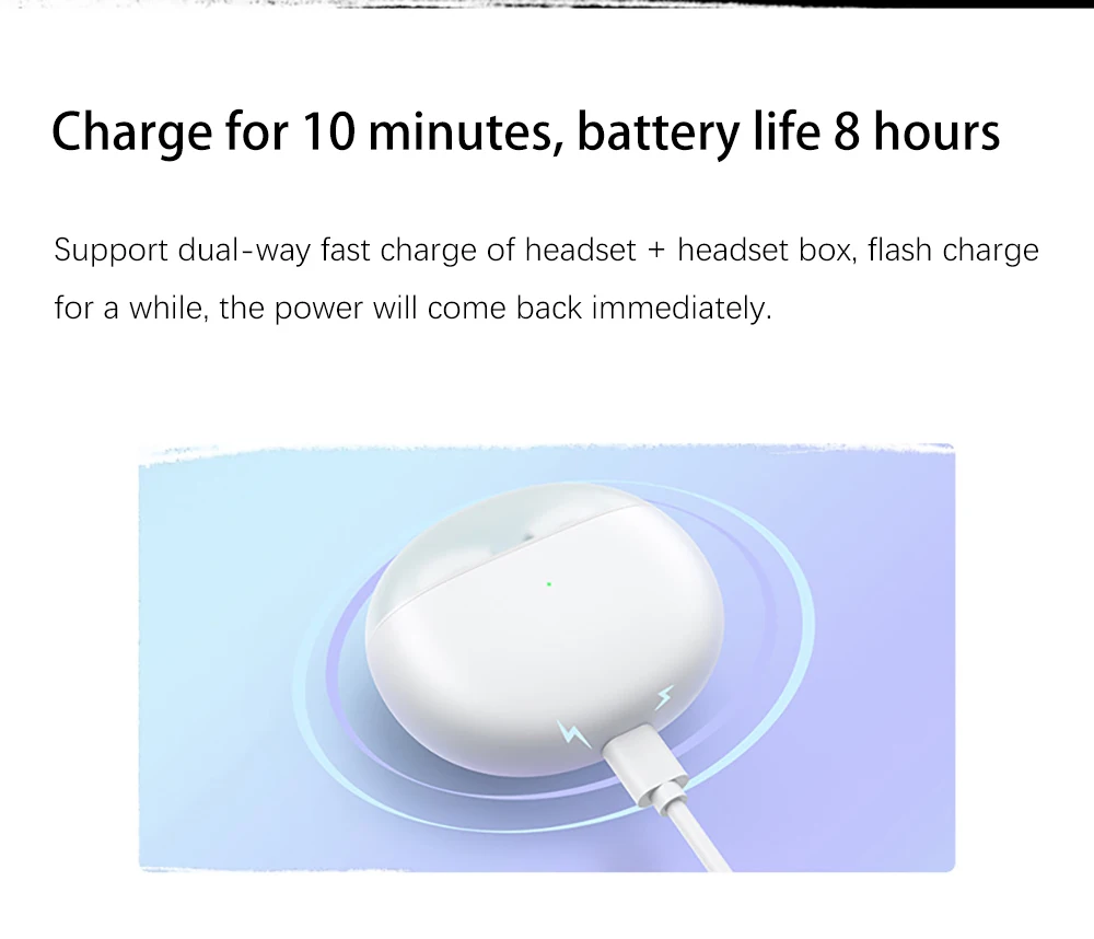 Модель: OPPO Enco Air 24 часа общего срока службы батареи 10 минут зарядки в течение 8 часов в режиме воспроизведения музыки Полупрозрачный дизайн 12 мм кристально чистый голосовой драйвер Цвет: черный/белый/синий Водонепроницаемость и защита от пыли: IPX4 Кодеки: AAC SBC Качество звука Драйвер: 12 мм Динамический драйвер Чувствительность драйвера: 112 ± 1 дБ при 1 кГц Частотный диапазон отклика: 20 Гц-20 кГц Чувствительность микрофона: -38 дБВ/Па Bluetooth Версия Bluetooth: 5,2 Диапазон Bluetooth: 10 м Емкость аккумулятора Тип батареи: литий-ионный аккумулятор Емкость аккумулятора: 25 мАч (наушники) / 440 мАч (зарядный чехол) Зарядка Время воспроизведения музыки (50% громкости): 4 часа (одного заряда) / 24 часа в сутки (с зарядным чехол) Время зарядки: 1,5 ч (наушники)/1,5 h (наушники + зарядное устройство чехол) Порт зарядки: Type-C * Вышеуказанные спецификации были получены на основе испытаний, выполненных в лабораториях OPPO. Время зарядки было протестировано в лабораториях OPPO при температуре 25 °C с помощью стандартного зарядного устройства OPPO. Фактические результаты могут незначительно отличаться в зависимости от экологических факторов и используемого зарядного устройства. Размеры Вес (всего устройства): 40,4 г Размеры (заряжающий чехол): 60,0 мм * 53,2 мм * 23,5 мм Размер (вкладыши): 35,8 мм * 18,9 мм * 17,7 мм Размер (посылка): 120 мм * 120 мм * 38 мм