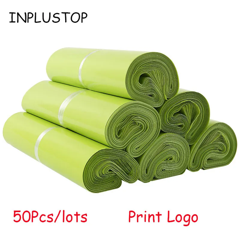 Новый почтовый конверт зеленого цвета, 50 шт. в упаковке, самоклеящаяся печать, курьерские Сумки, полиэтиленовые пластиковые водонепроницаемые сумки для одежды