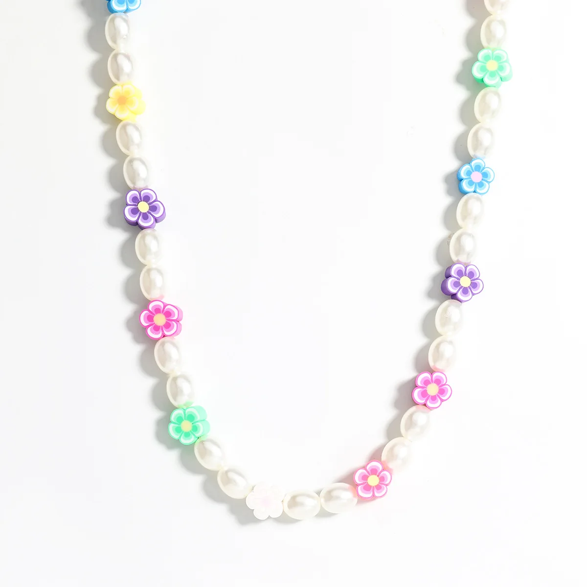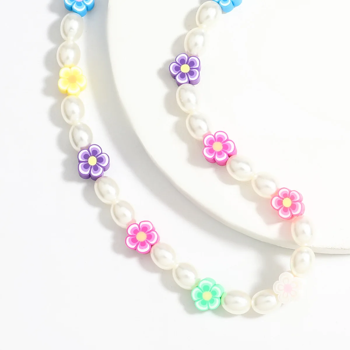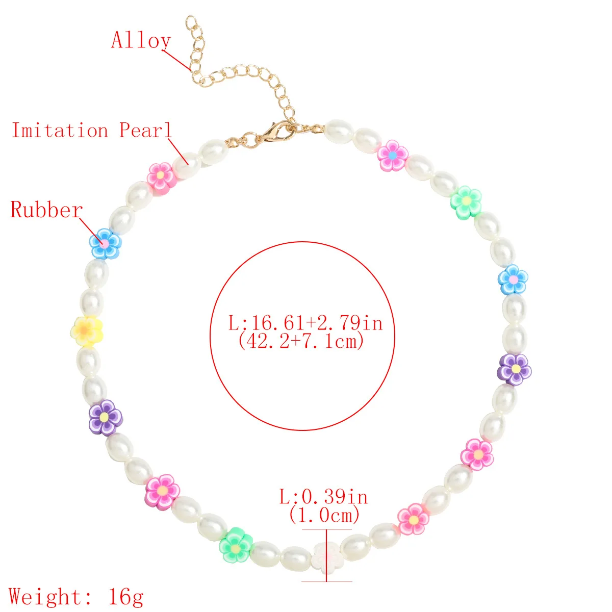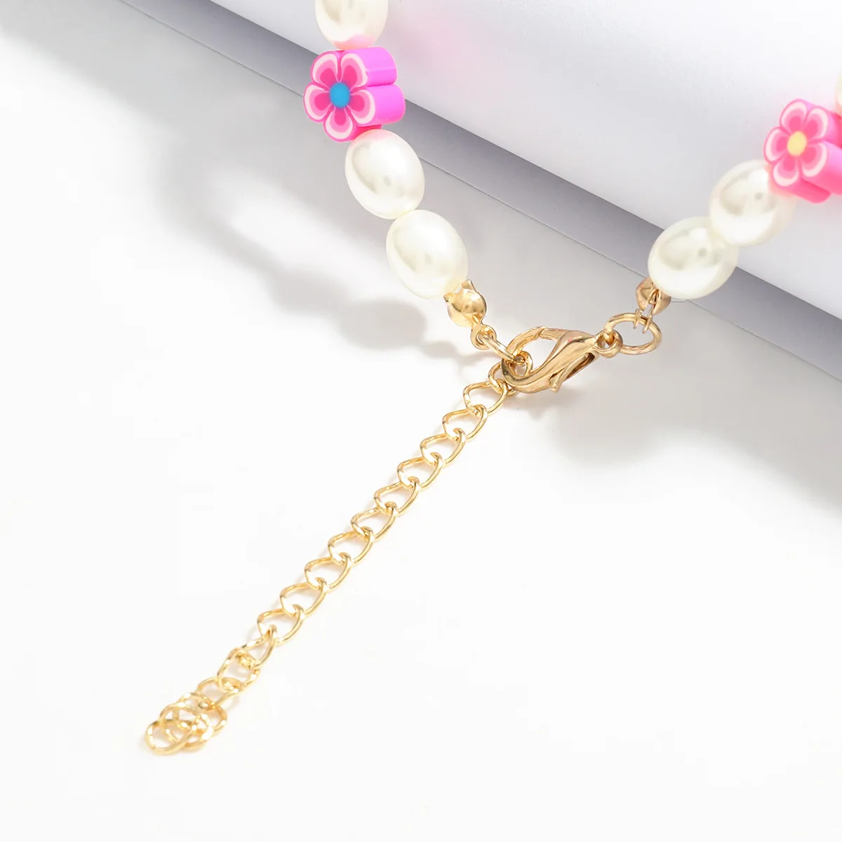 Ожерелье-чокер женское, с цветами из глины и искусственным жемчугом