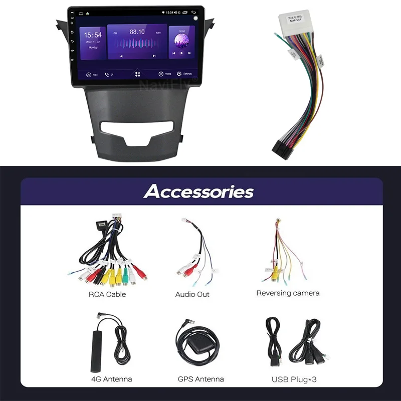NaviFly 7862 Carplay 6 ГБ 128 ГБ DSP 4G LTE Android многофункциональная автомобильная интеллектуальная система для SsangYong Korando 3 Actyon 2 2013 - 2017