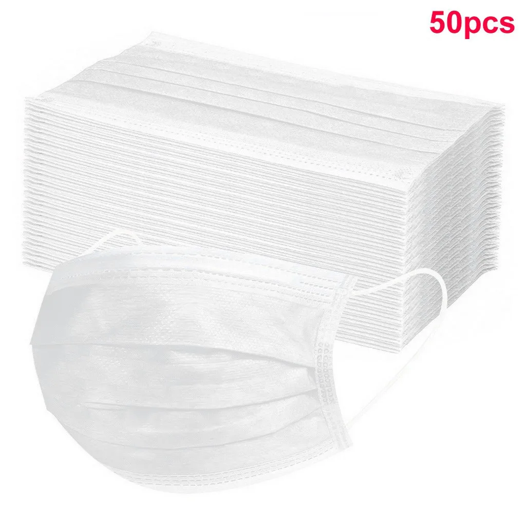 Маска для лица одноразовая с фильтром для очищения воздуха, пылезащитная 3-слойная белая маска унисекс для взрослых, 50 шт.
