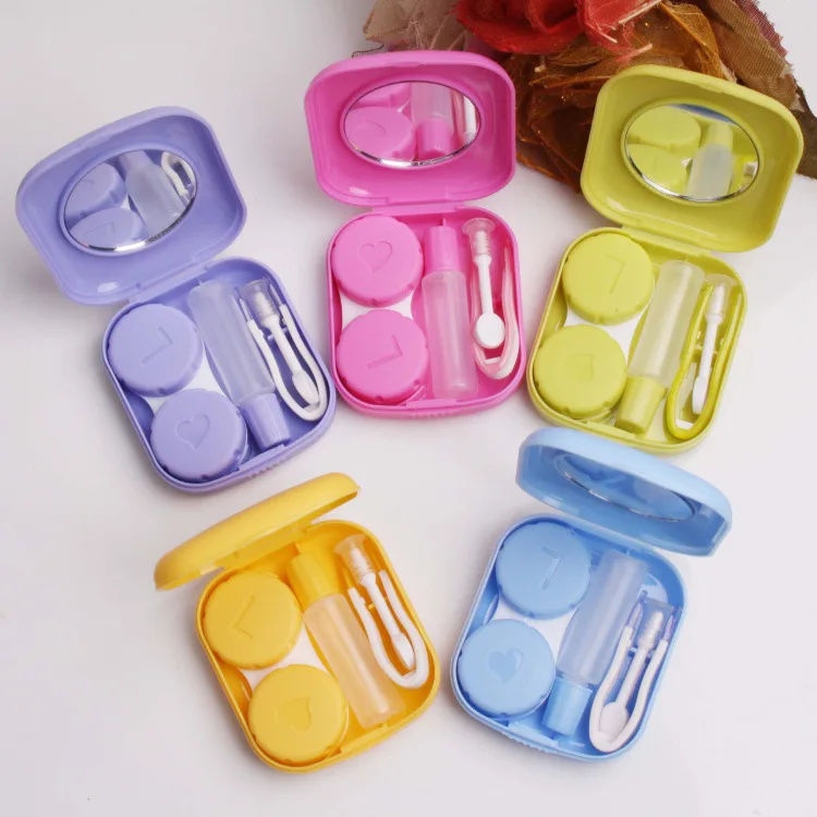 Квадратный мини-контейнер для контактных линз, цветной бокс с зеркалом для хранения контактных линз, милый дорожный бокс для хранения контактных линз