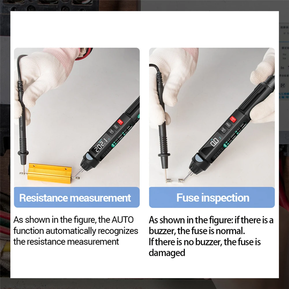 6000 штук-это карманный 3 5/6 цифр, истинное эффективное значение, умный мультиметр в форме ручки, нет необходимости поворачивать циферблат, чтобы выбрать функцию.