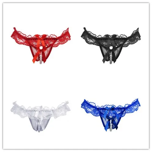 Кружевная открытая промежность Женские Соблазнительные трусики-стринги из сетчатой ткани с жемчугом