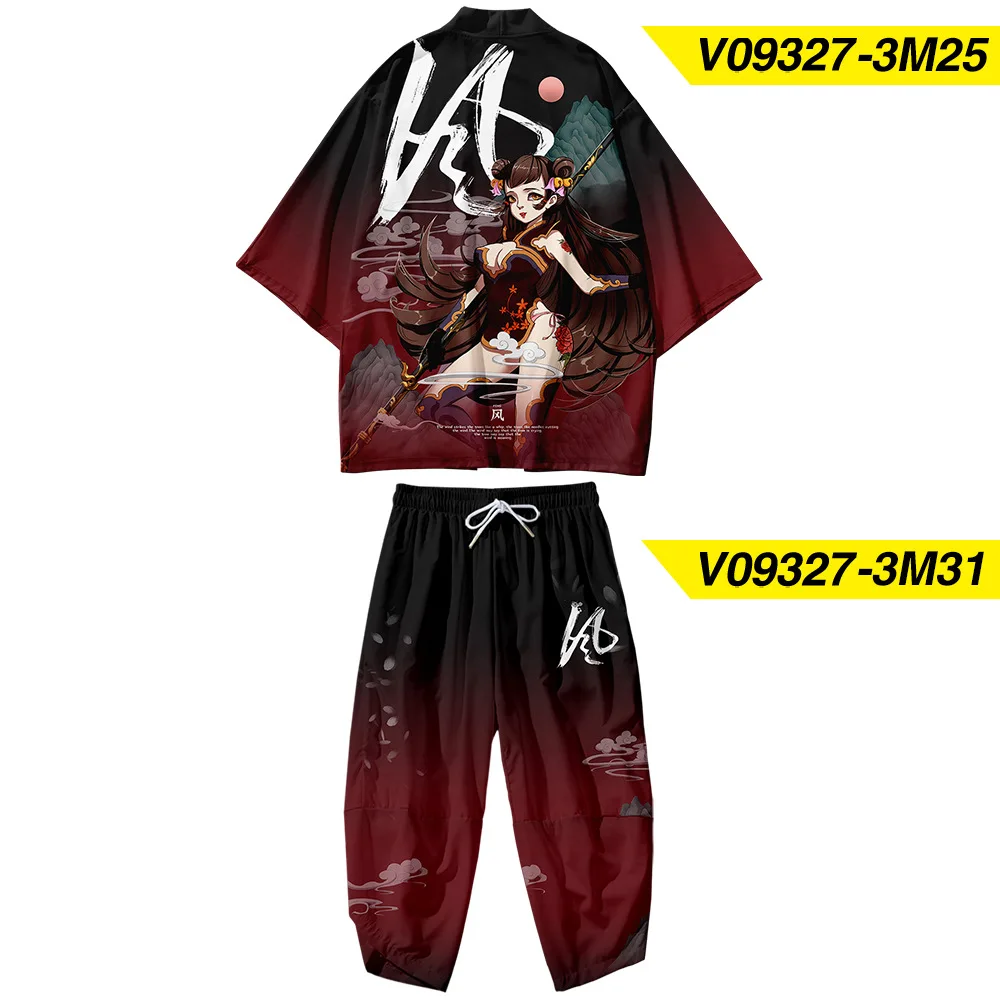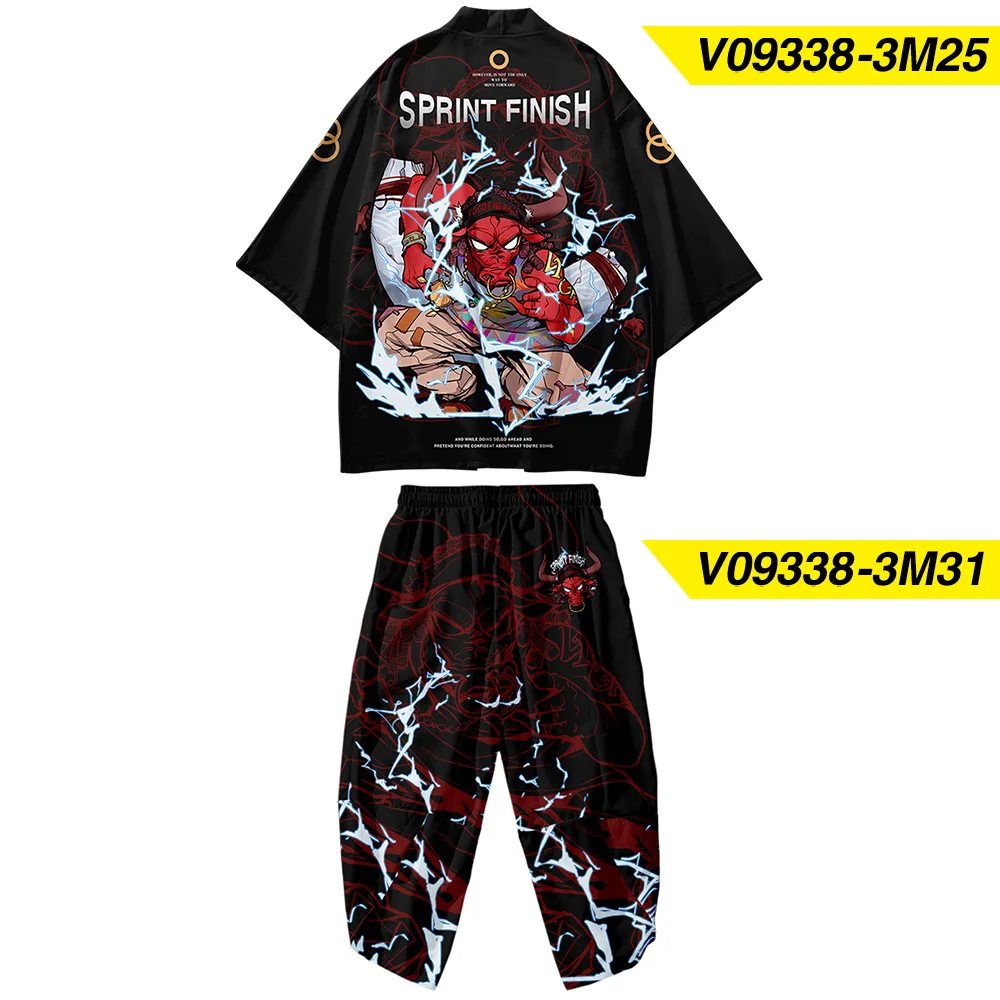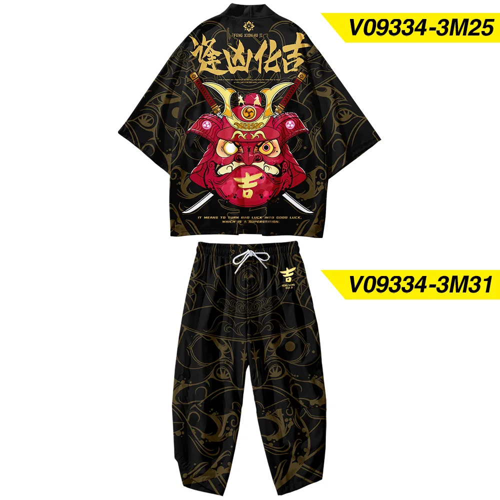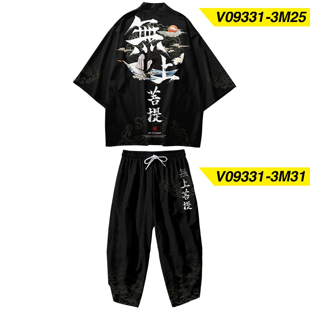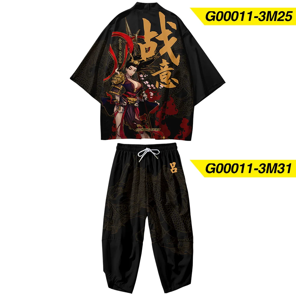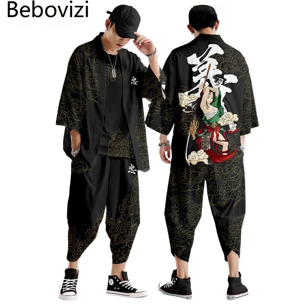 Костюм-двойка в японском стиле для женщин и мужчин, юката, кардиган для косплея и штаны, свободное кимоно самурая в стиле Харадзюку, размеры до 4XL и 6XL