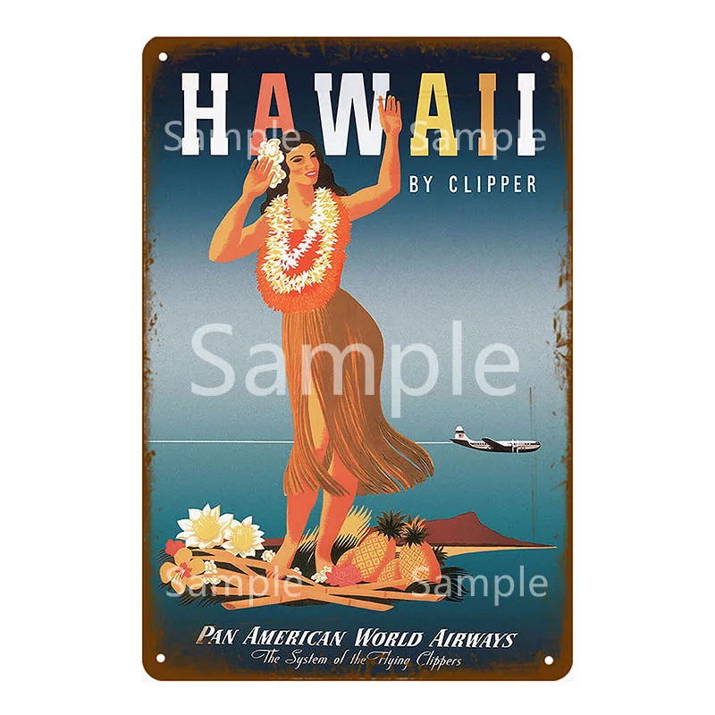 Летний металлический постер с изображением Гавайского Пляжа девушки...