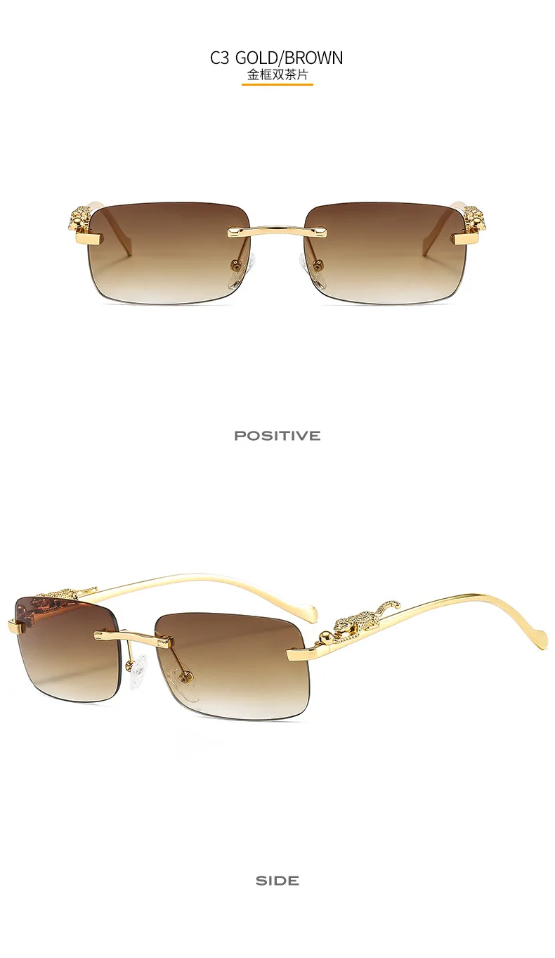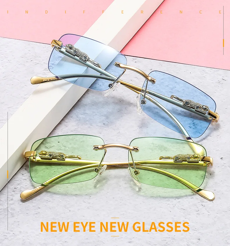 Люксовый бренд резьба с леопардовым принтом для мужчин без оправы Солнцезащитные очки с квадратными линзами с Женская мода Цвет ретро солнцезащитные очки в металлической оправе UV400 Oculos De Sol masculino