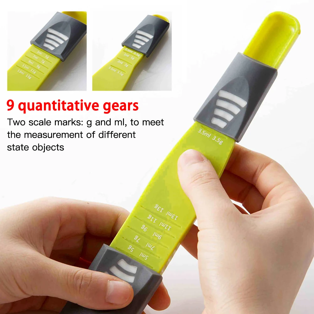 100% новый и высокое качество Кухонные регулируемые мерные ложки-отличный предмет для всех ваших кухонных нужд. Прочные и прочные, регулируемые мерные ложки изготовлены только из лучших материалов. Рифленые рисунки помогут вам перемещать ползунки назад и вперед для точного измерения.