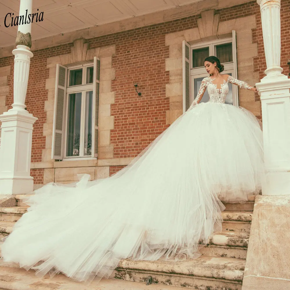 Винтажное бальное платье Vestido De Noiva, свадебные платья с оборк...