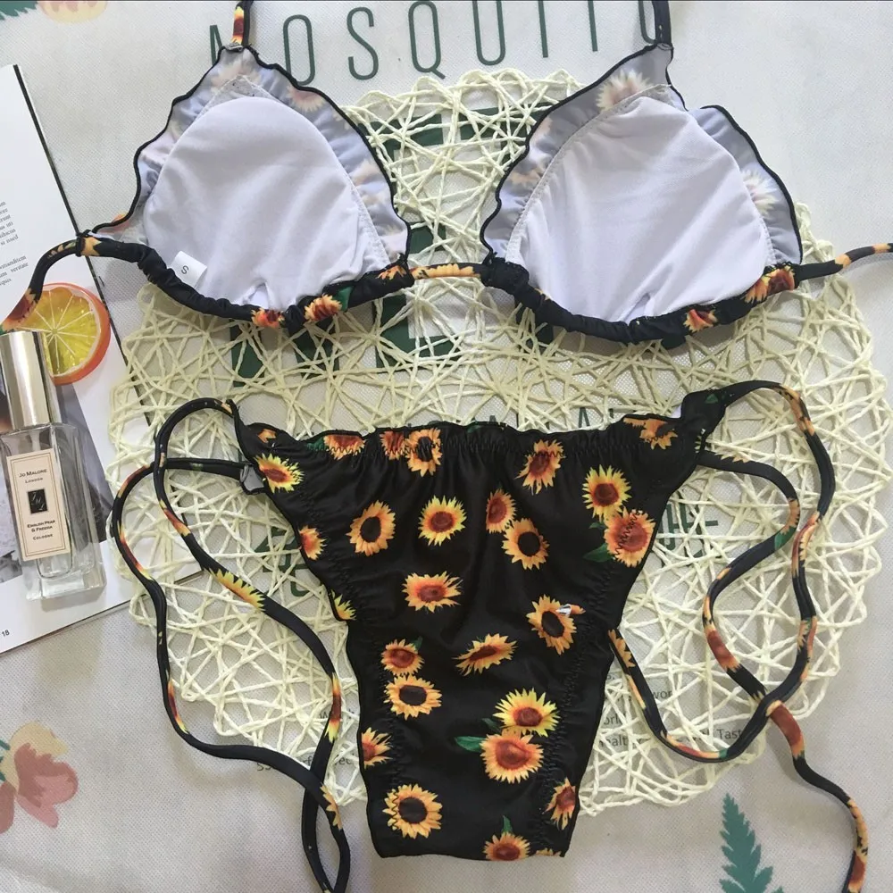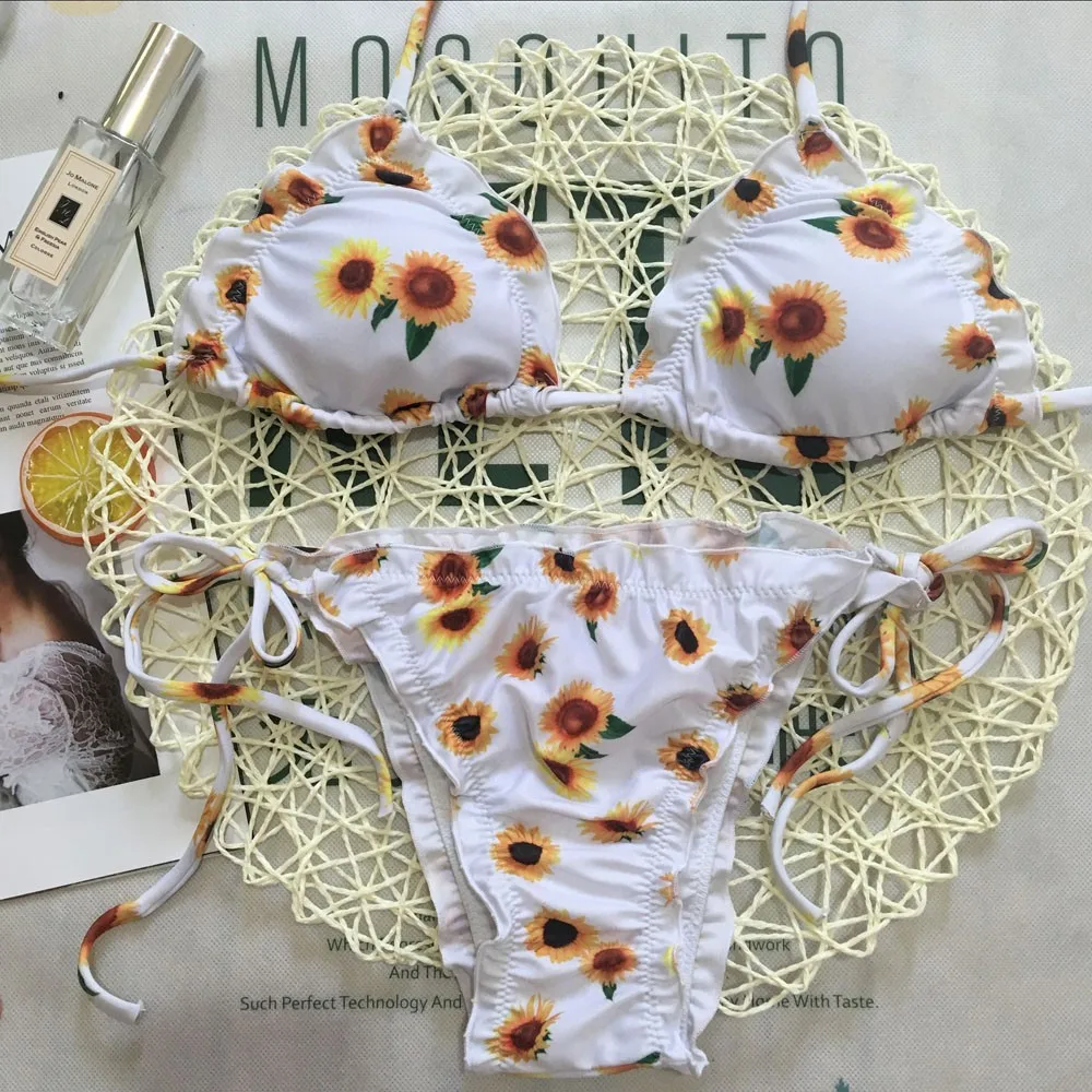 Сексуальный комплект бикини, женский купальник с принтом подсолнухов, танкини, Бразильские Купальники, раздельные бикини, женское нижнее белье