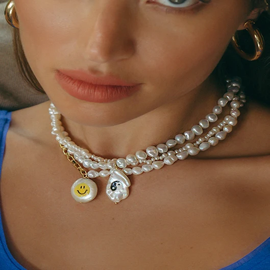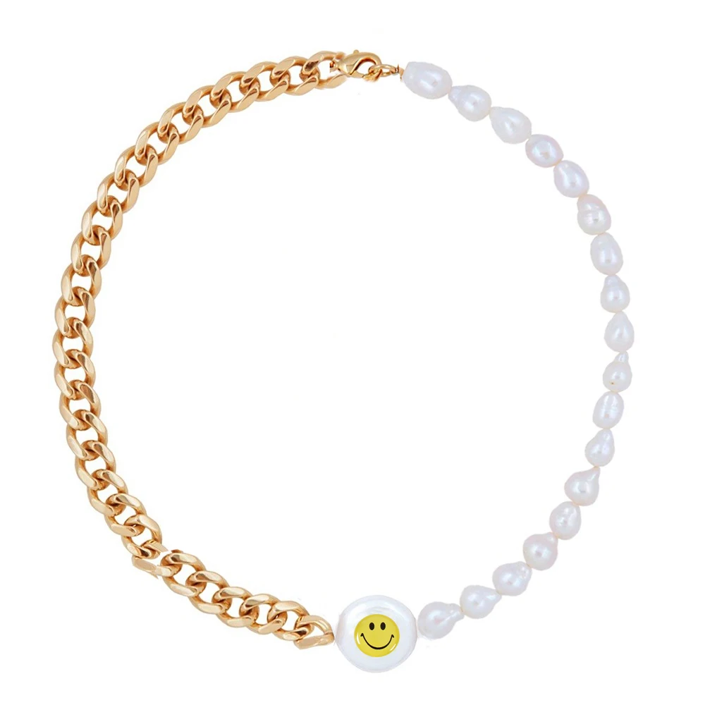 Женский чокер Майами из нержавеющей стали, ожерелье геометрической формы желтого цвета с пресноводным жемчугом в стиле панк и панк, кубинский чокер с улыбкой, барокко, смайликом