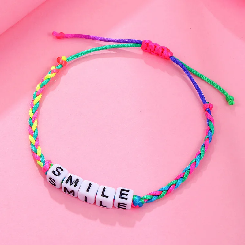Новинка 2021, милый детский цветной браслет-цепочка, буквы, позитивная энергия, английские слова, конфетный цвет, акриловый очаровательный браслет, DIY подарки