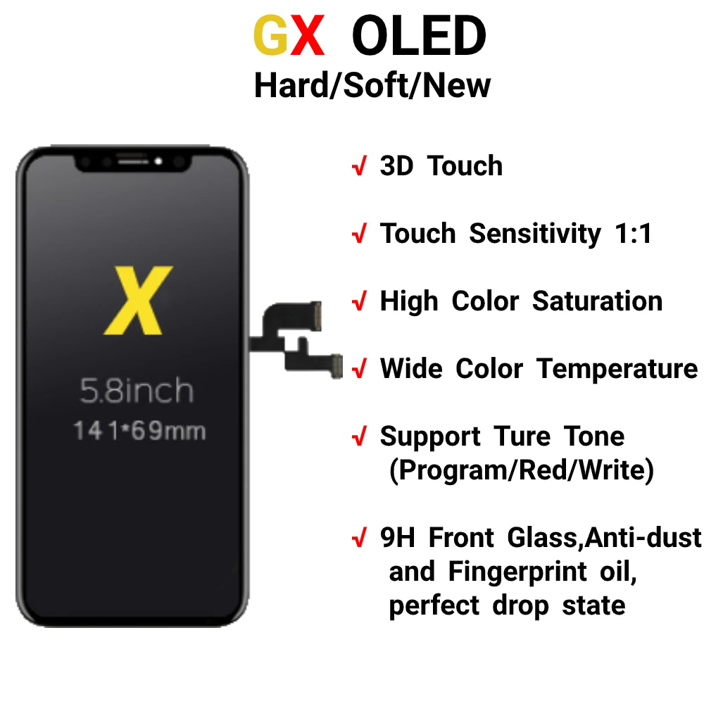 Новый GX OLED для iPhone X XS XSMax 11Pro ЖК-дисплей сенсорный экран дигитайзер сборка протестирована без битых пикселей замена LCD xs max Посылка включает: 1xlcd + 1 набор инструментов + 1 закаленное стекло+ 1 прозрачный защитный чехол Уровень качества: A + + +. Бесплатные инструменты для ремонта включены. 100% работоспособность, тестирование 3 раза перед отправкой. Функция: замена экрана для ремонта трещин. /Разбитый экран. Также решаем отображение/касание. Проблемы, битые пиксели и неправильный цвет. Примечание: Пожалуйста, проверьте его перед установкой экрана. Это очень важно для гарантии. У экрана есть проблемы, если вы обнаружили, что у вас есть какие-либо проблемы перед установкой, мы можем заменить для вас. Если у вас есть какие-либо проблемы, пожалуйста, свяжитесь с нами. Перед установкой экрана убедитесь, что у вас достаточно опыта установки. Очень важно.