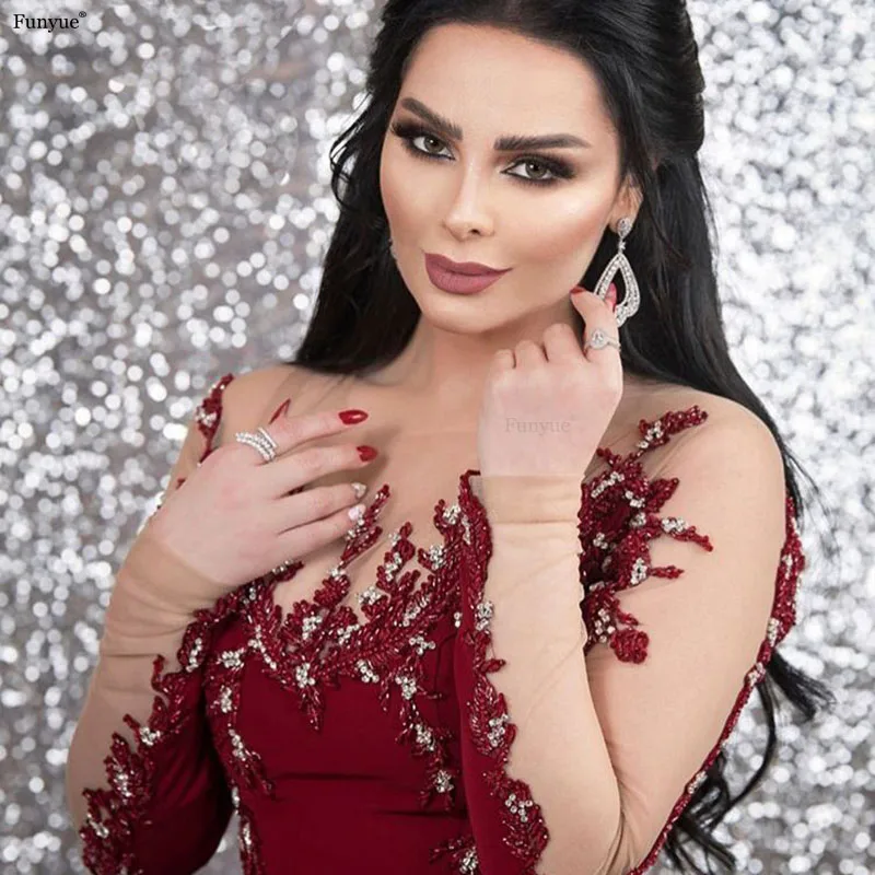 Женское вечернее платье-русалка, Бордовое платье с длинным рукавом,...