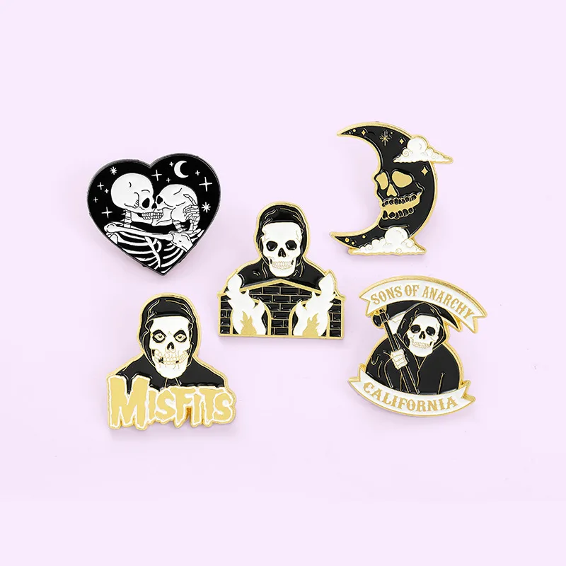 Украшения в стиле панк, готический череп, луна, эмалированные булав...
