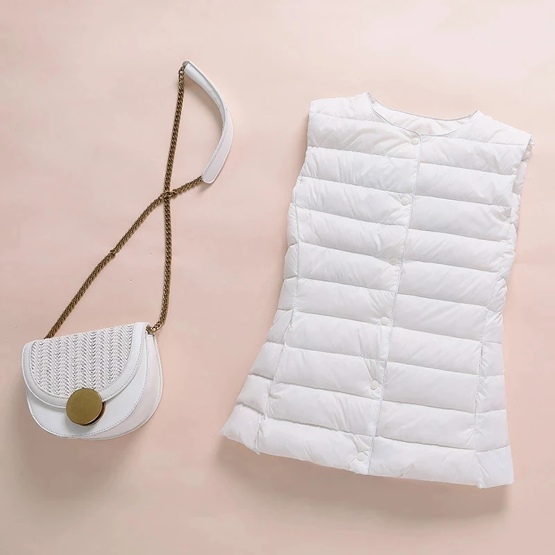 AECU 2021 женский ультралегкий пуховой жилет, однобортный женский жилет без рукавов на утином пуху, пышный теплый жилет с подкладкой, куртка