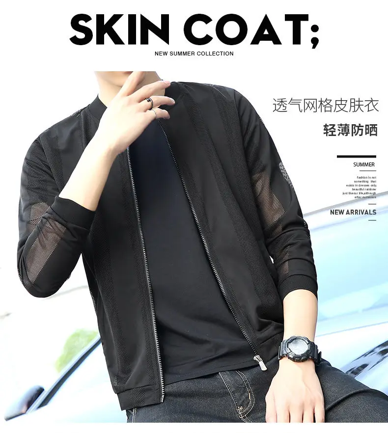 Ветровка мужская, летняя, солнцезащитная, черного, белого цвета, 5XL