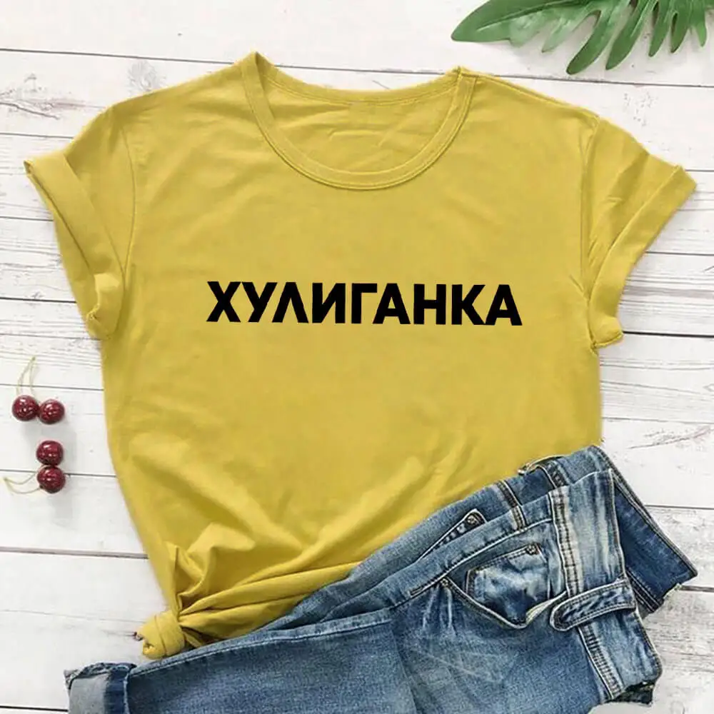 Хулиганка Женская футболка из 100% хлопка с русской кириллицей забавная летняя повседневная футболка унисекс с круглым вырезом футболка с короткими рукавами и надписью