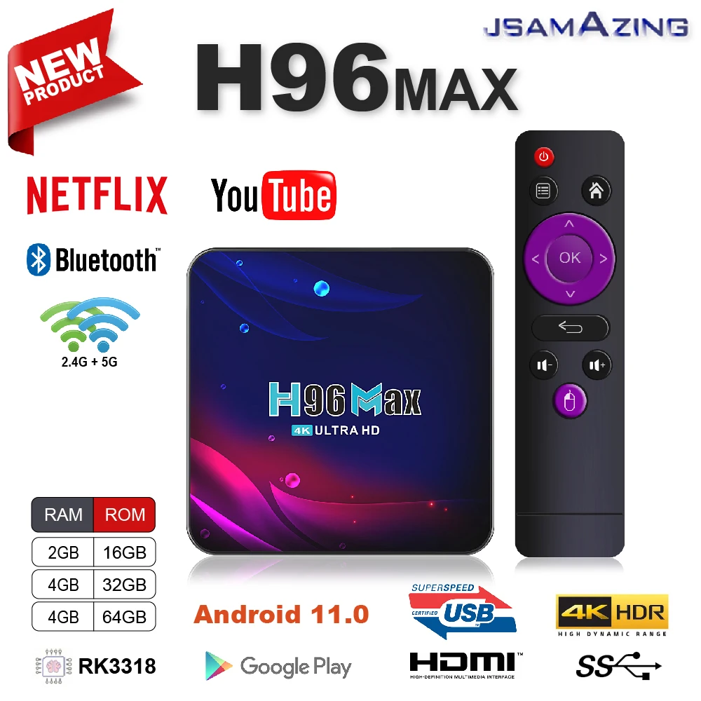 Приставка Смарт-ТВ H96 Max V11, Android 11,0, BT 4,0, RK3318, двойной Wi-Fi, 2,4 ГГц5,0, 16 ГБ, 32 ГБ, 64 Гб, поддержка IP-ТВ, Google Player, Youtube