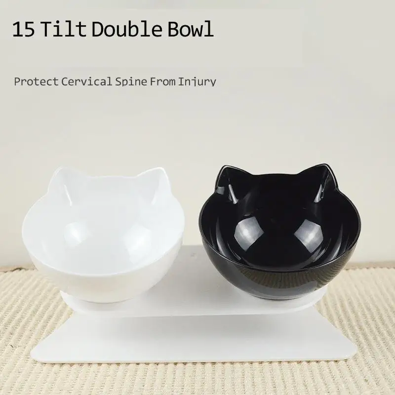 Нескользящая двойная миска с подставкой для кормления кошек с защит...