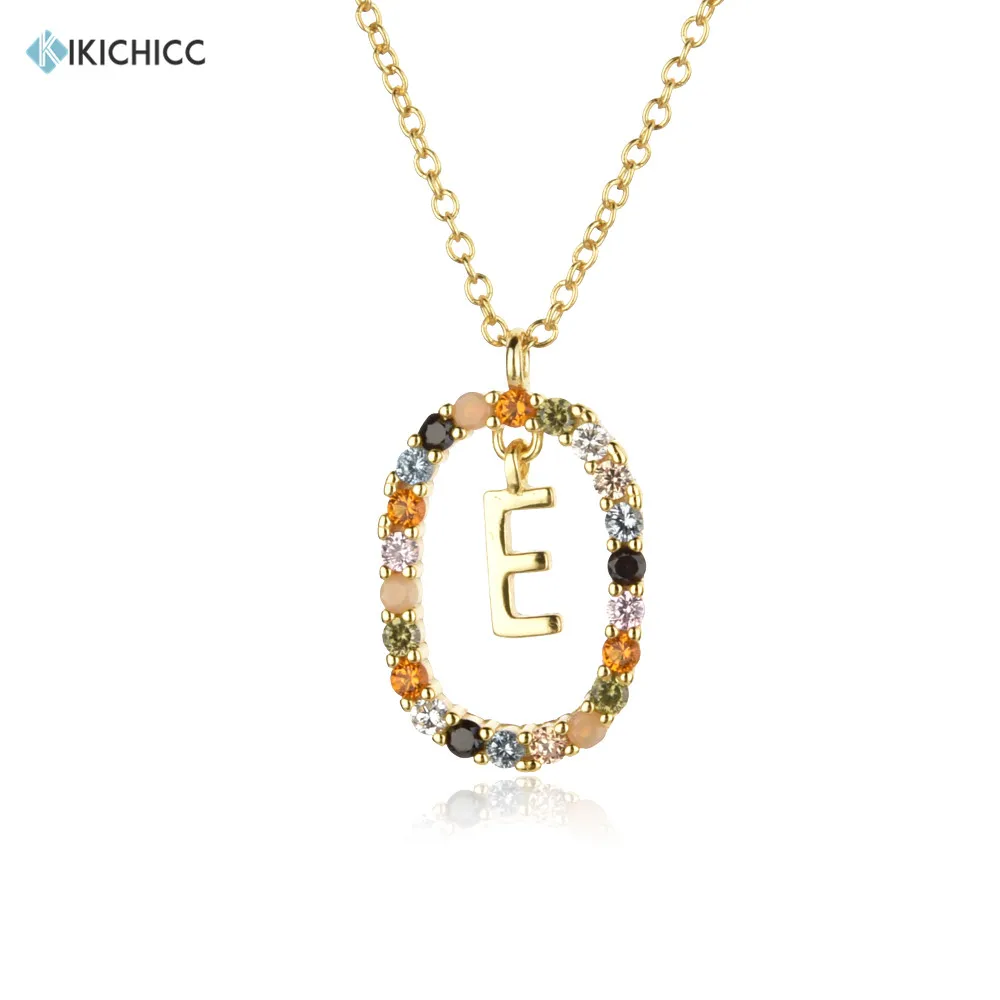 KIKICHICC 925 Стерлинговое Серебро Золотые буквы E K T Алфавит Начальная Длинная цепочка ожерелье Летние Красочные циркониевые овальные ювелирные изделия