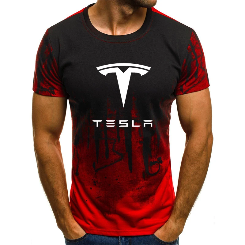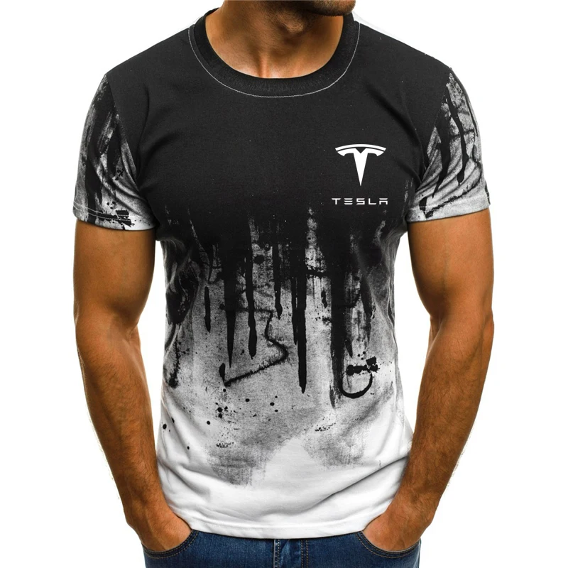 Летняя мужская футболка Tesla с коротким рукавом из молочного шелка в стиле хип-хоп, модная мужская футболка с 3d-градиентом и брызгами