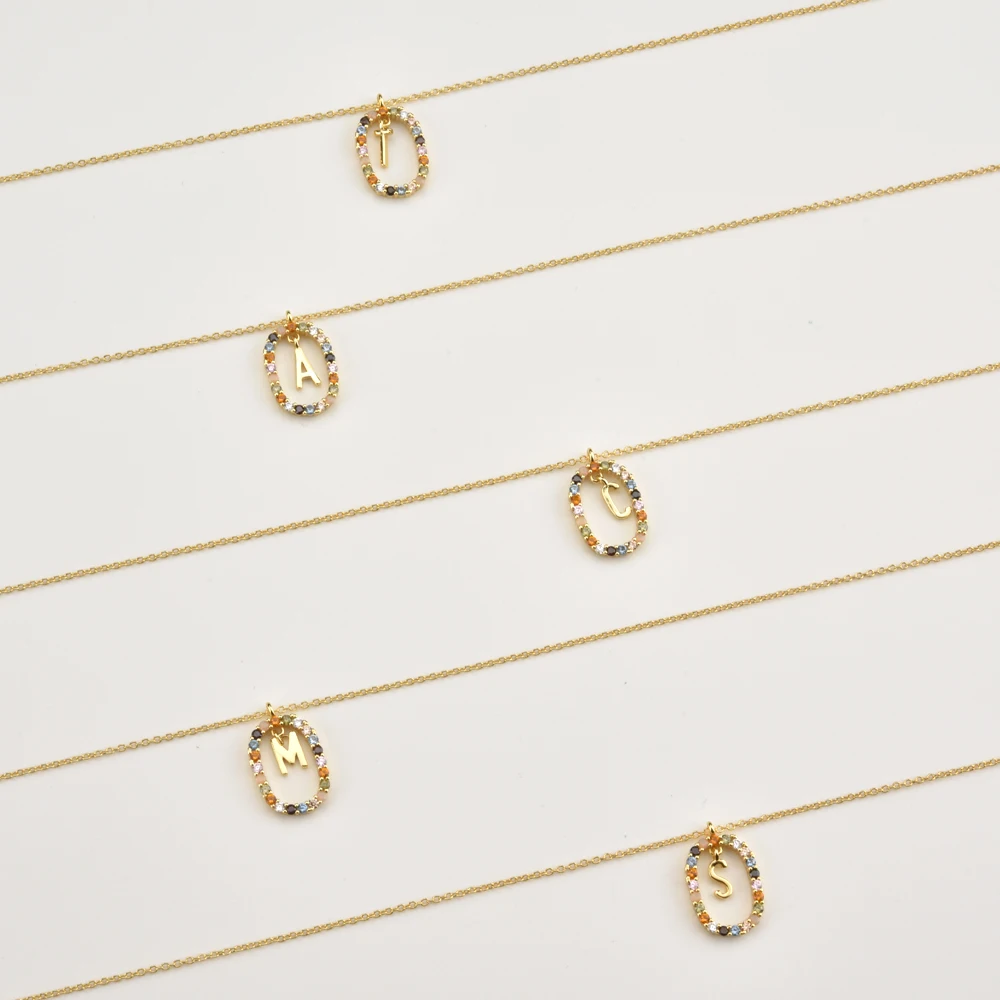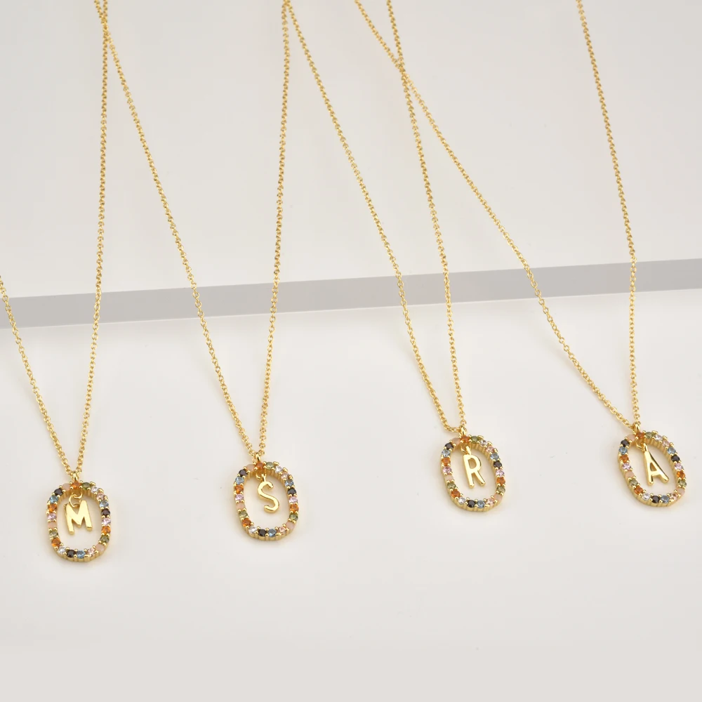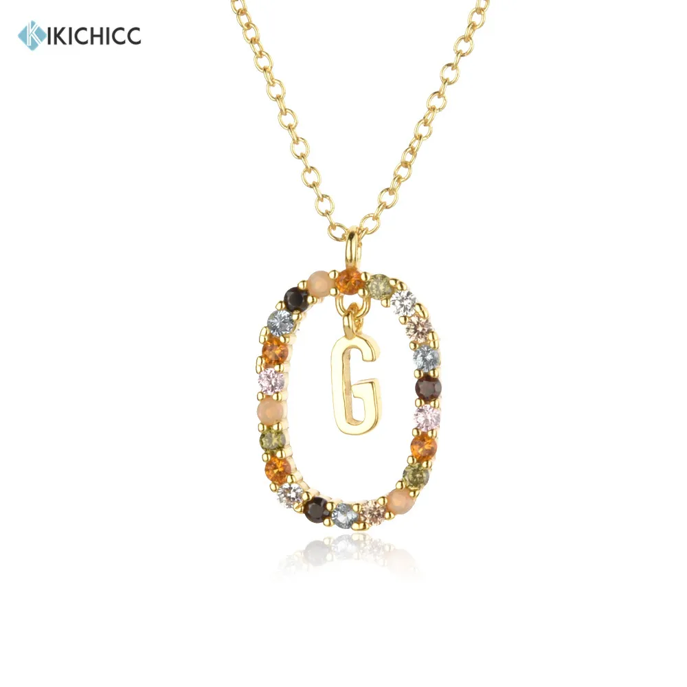 KIKICHICC 925 Стерлинговое Серебро Золотые буквы G R C Алфавит Начальная Длинная цепочка ожерелье Летние Красочные циркониевые овальные ювелирные изделия