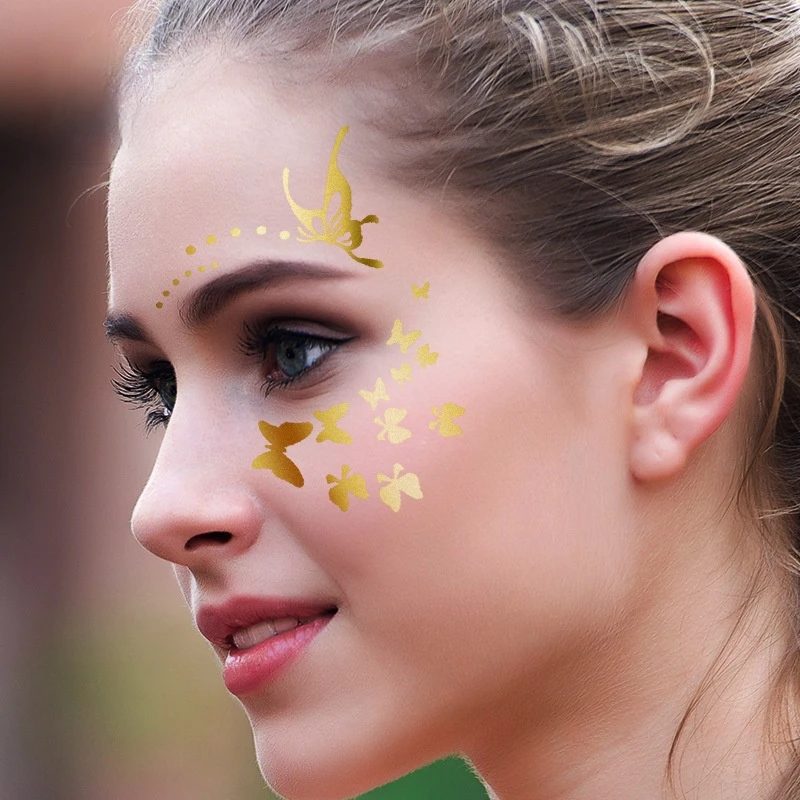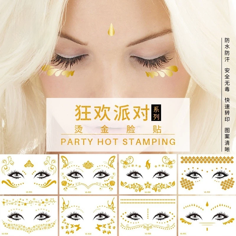 Новая Золотая временная татуировка для лица, водонепроницаемые наклейки для макияжа с заблокированными веснушками, наклейки для глаз, оптовая продажа, искусственная татуировка для женщин и девочек