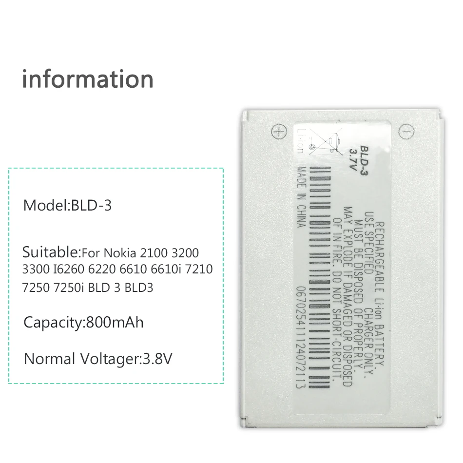 Suitable ModelFor Nokia 2100 3200 3300 I6260 6220 6610 6610i 7210 7250 7250i BLD 3 B