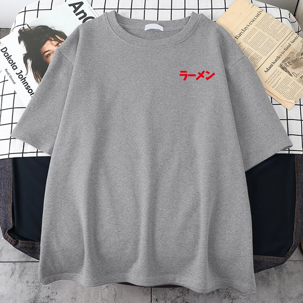 Красные футболки с японским текстом, мужские корейские футболки с рисунком, Ретро Уличная одежда, мужские футболки оверсайз с круглым вырезом