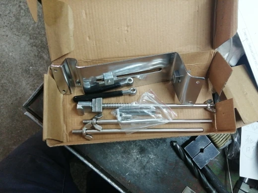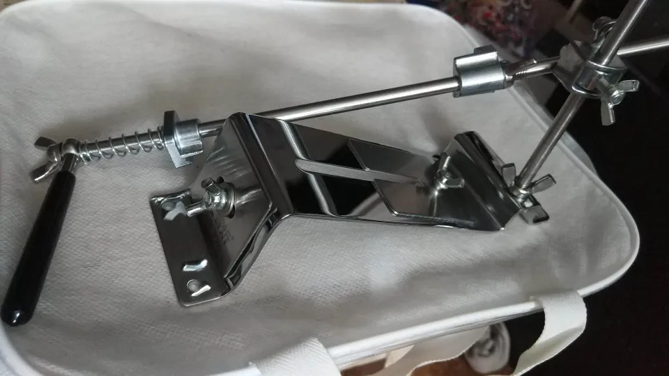 станок пришел, но нет втулки для крепежа направляющей. Без втулки угол заточки не выставишь.