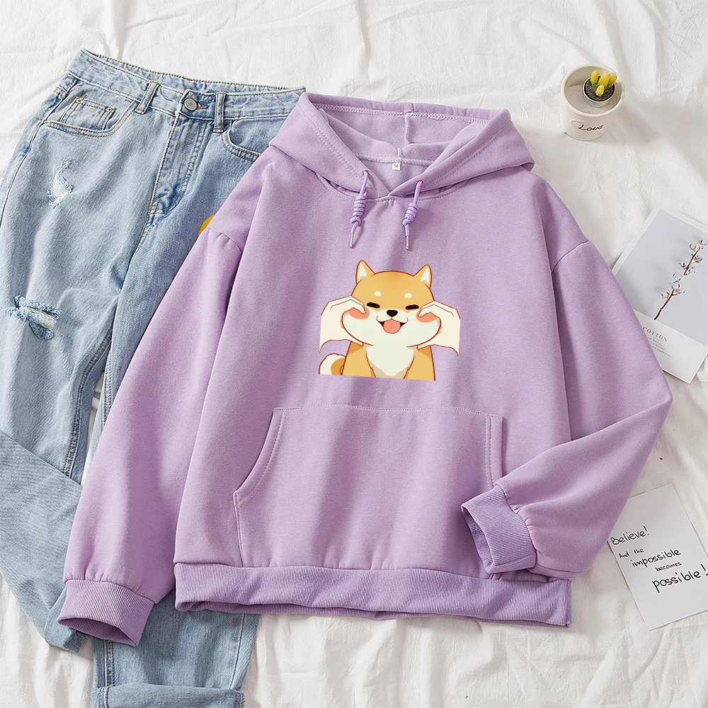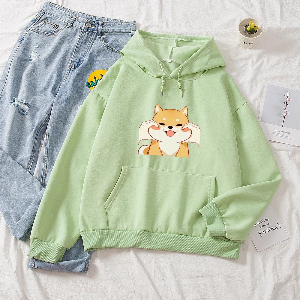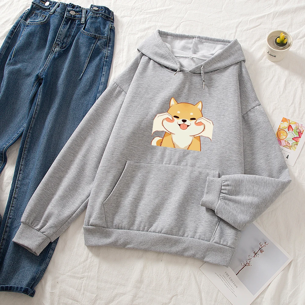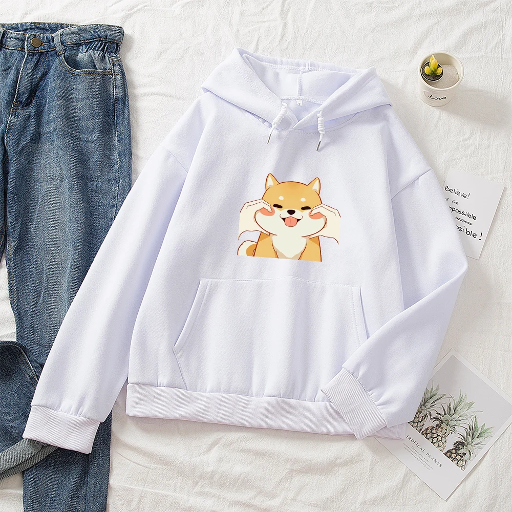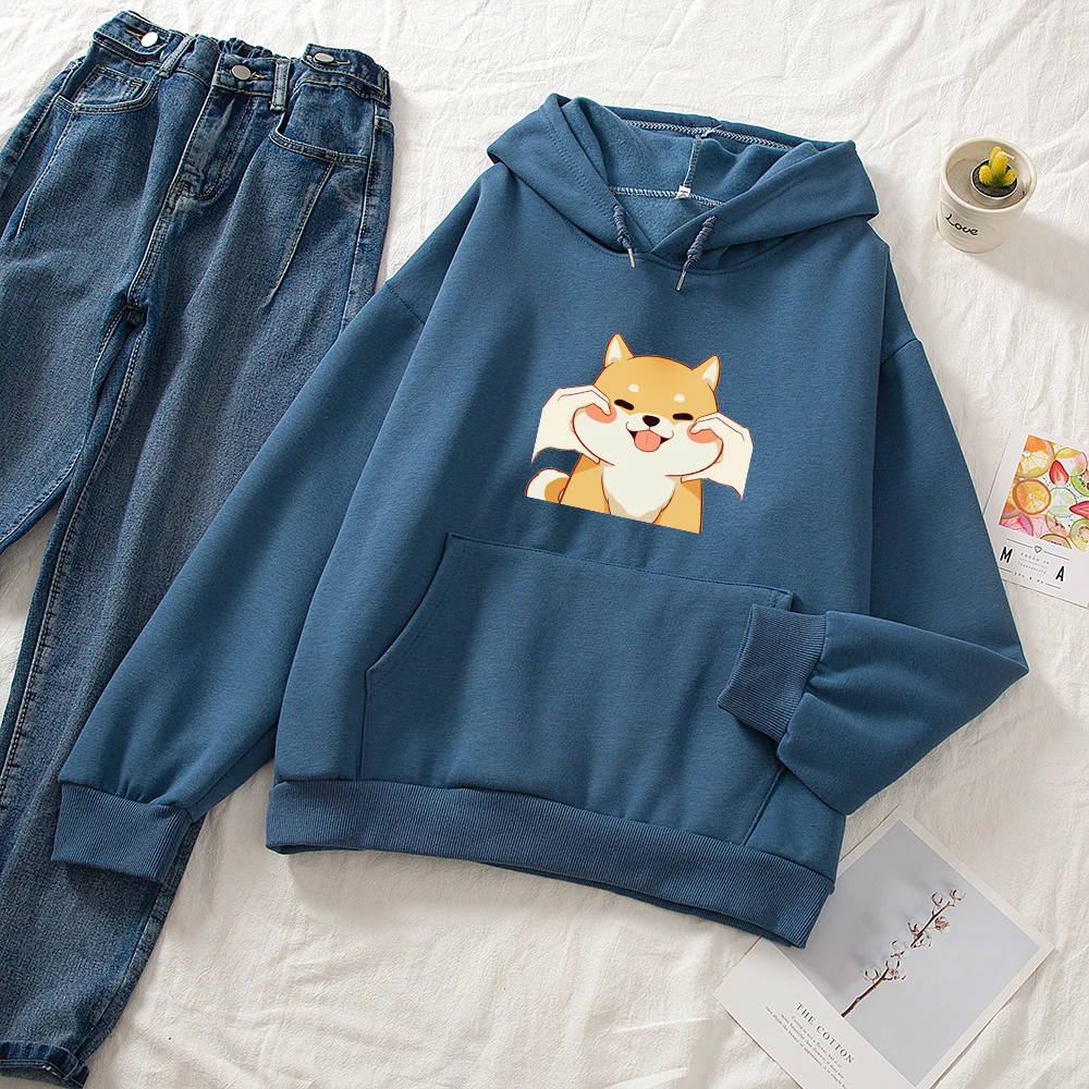 Свитшот с капюшоном с принтом веселых симпатичных мультяшных животных, собак, осенняя забавная Повседневная хлопковая свободная уличная одежда, кавайные толстовки