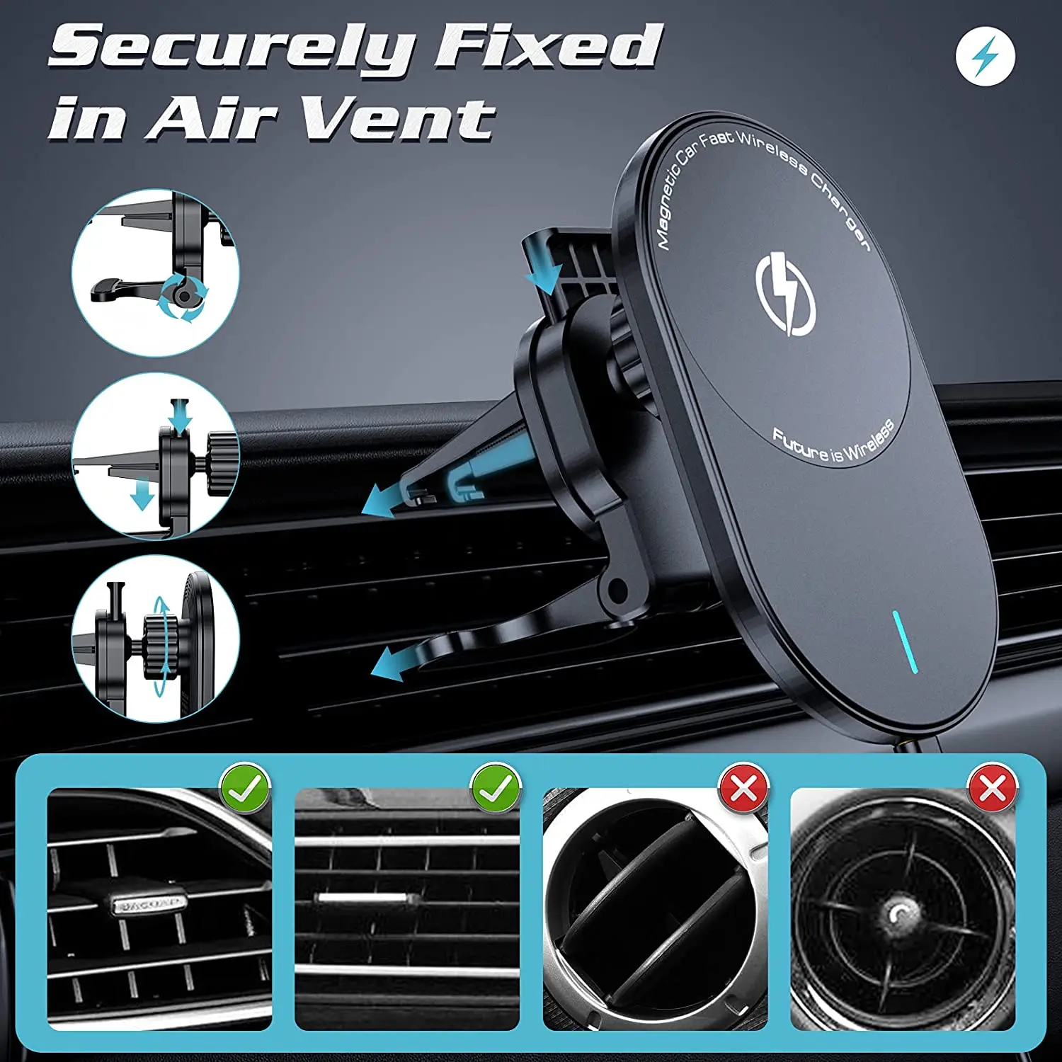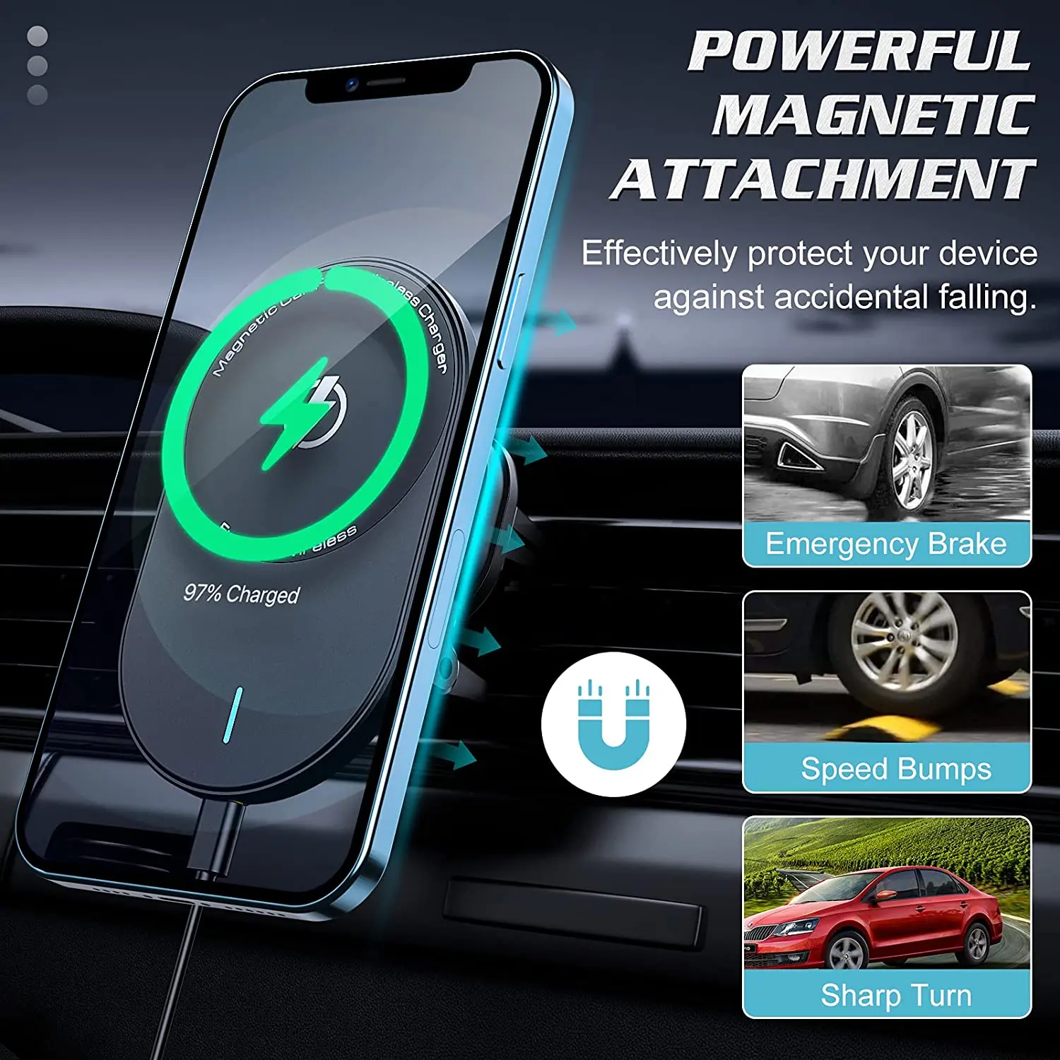 DCAE магнитное автомобильное беспроводное зарядное устройство Подставка 15 Вт Qi Быстрая зарядка для iPhone 13 12 Pro Max Mini крепление на вентиляционное отверстие магнитный держатель для телефона
