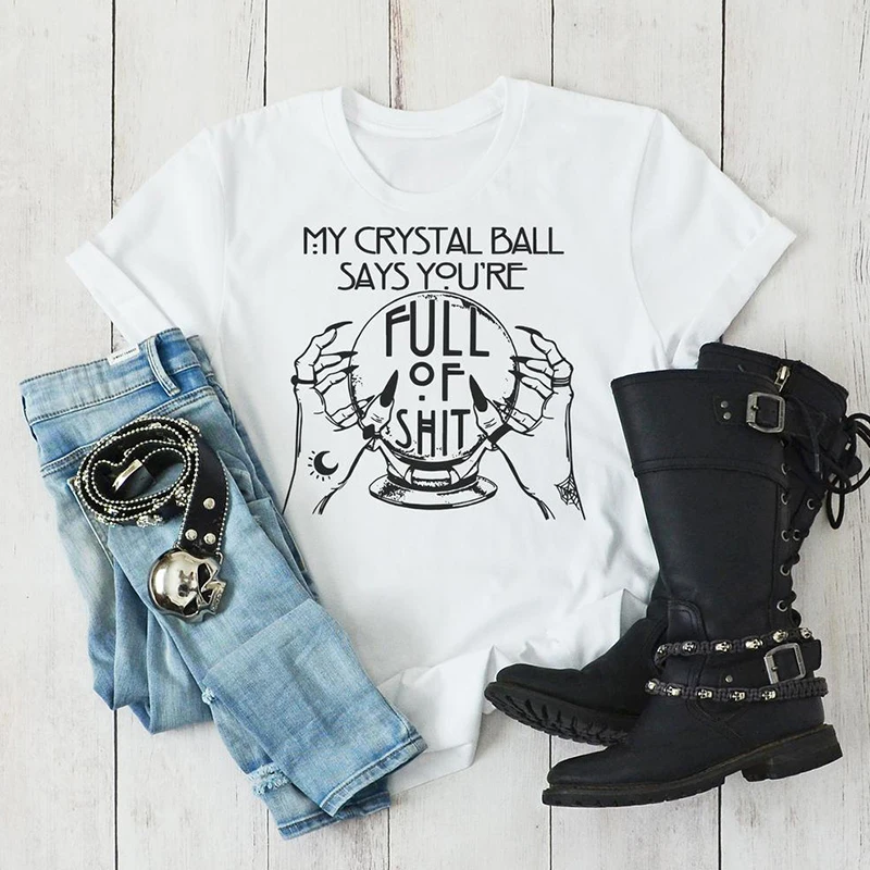 Мой хрустальный шар говорят, что вы полный смешных одежда в готическом стиле Хэллоуин Викка ведьма Графический Футболка для женщин 90s Воно хиппи-футболки